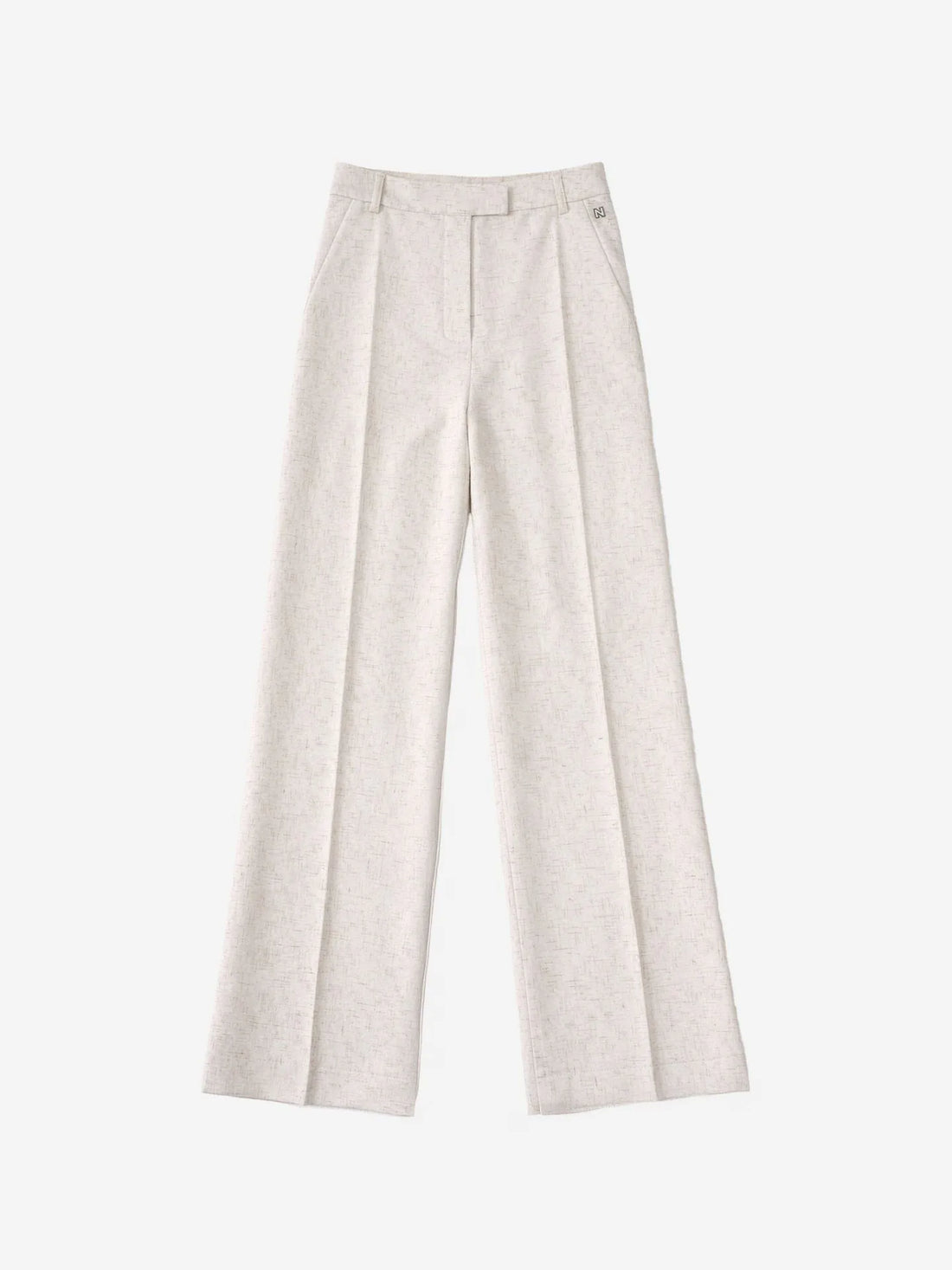Gemêleerde pantalon met persvouwen, steekzakken met een glitterbies, een middelhoge taille en een subtiel logo....