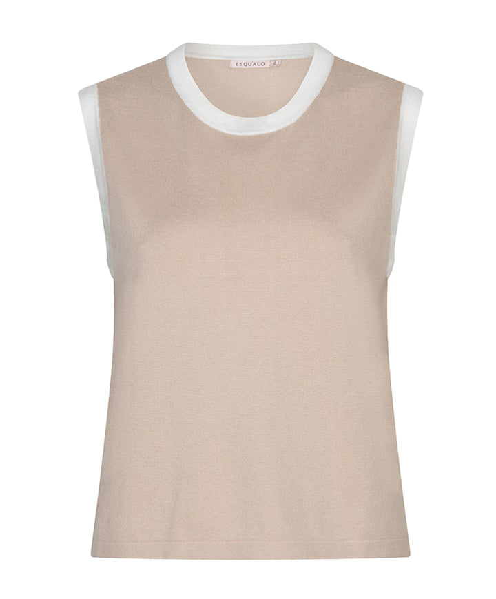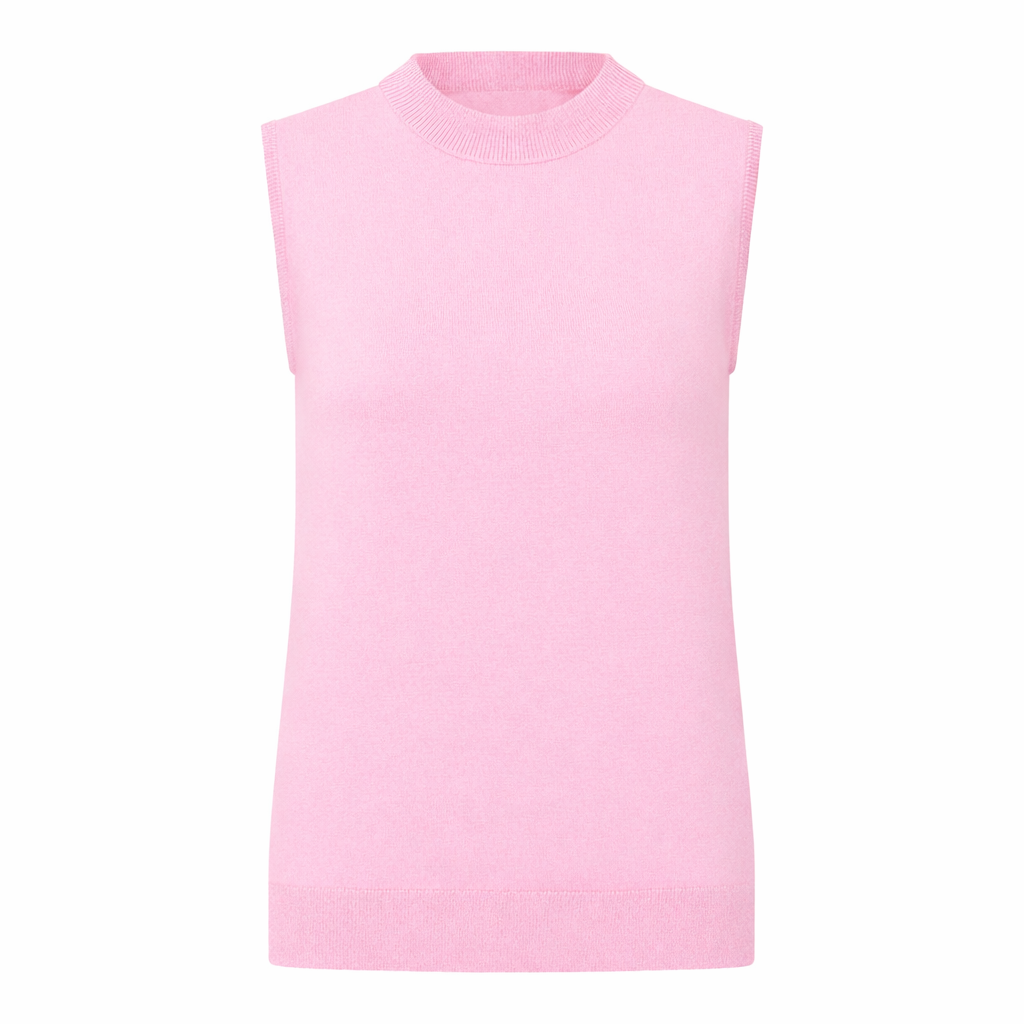 Stijlvolle mouwloze top in een zachte roze kleur. De fijne gebreide stof en ronde hals...