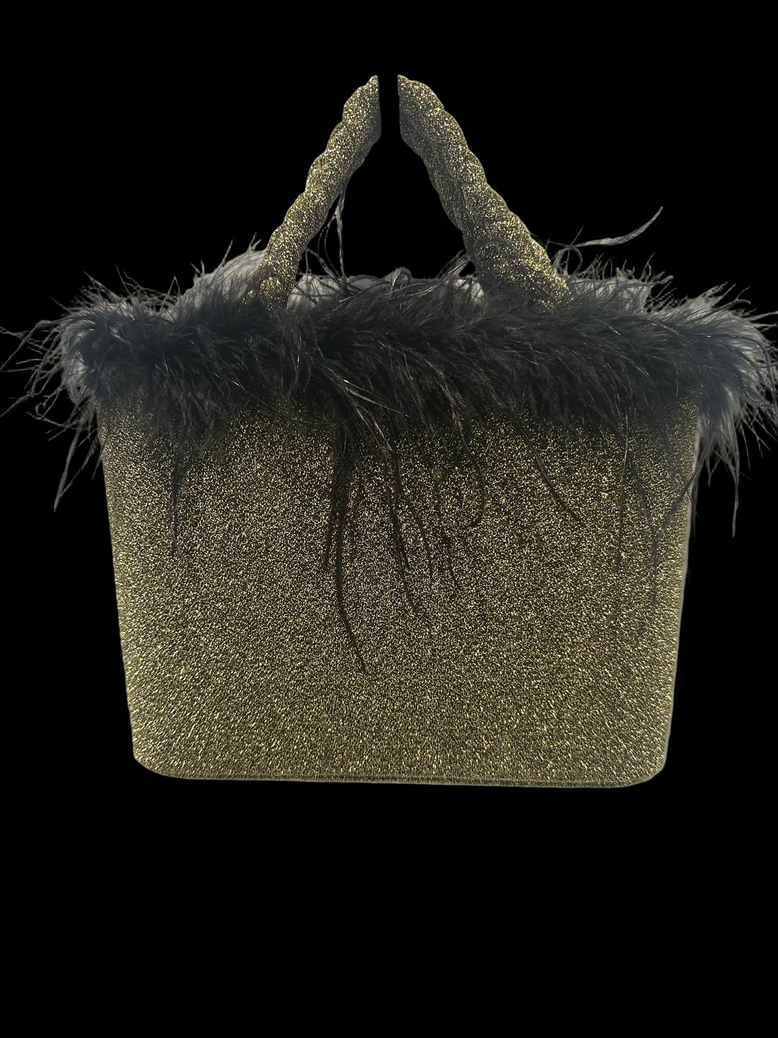 Glitter Party Bag met zwarte verenrand Deze sprankelende handtas is dé finishing...