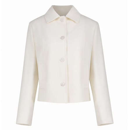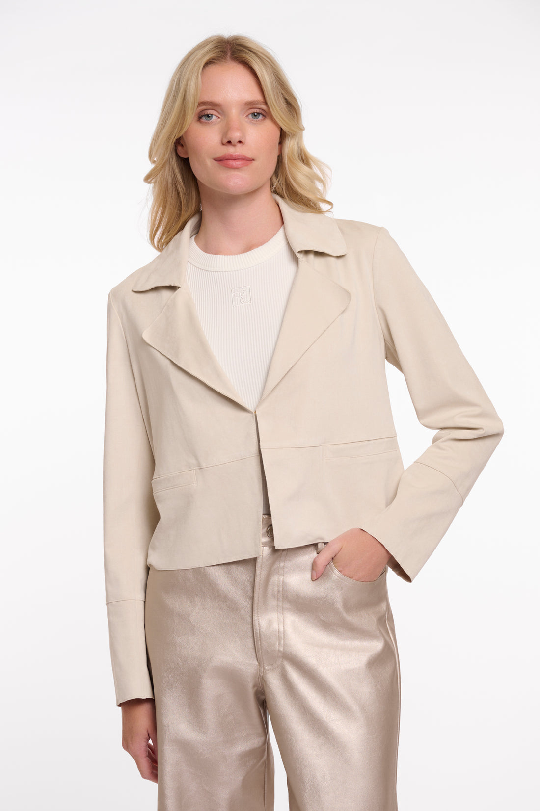 Dit off-white jasje is een tijdloze toevoeging aan elke garderobe. Het korte, licht getailleerde model...