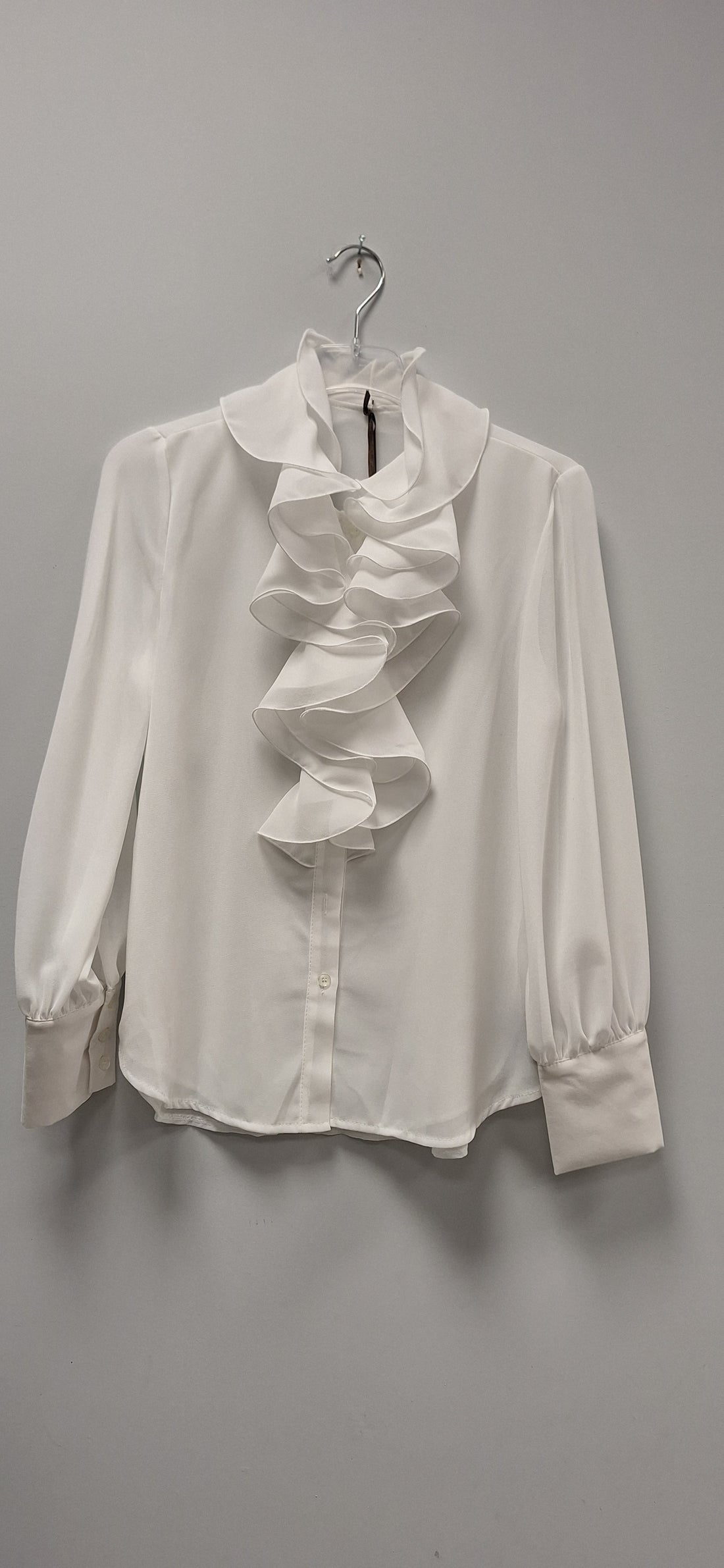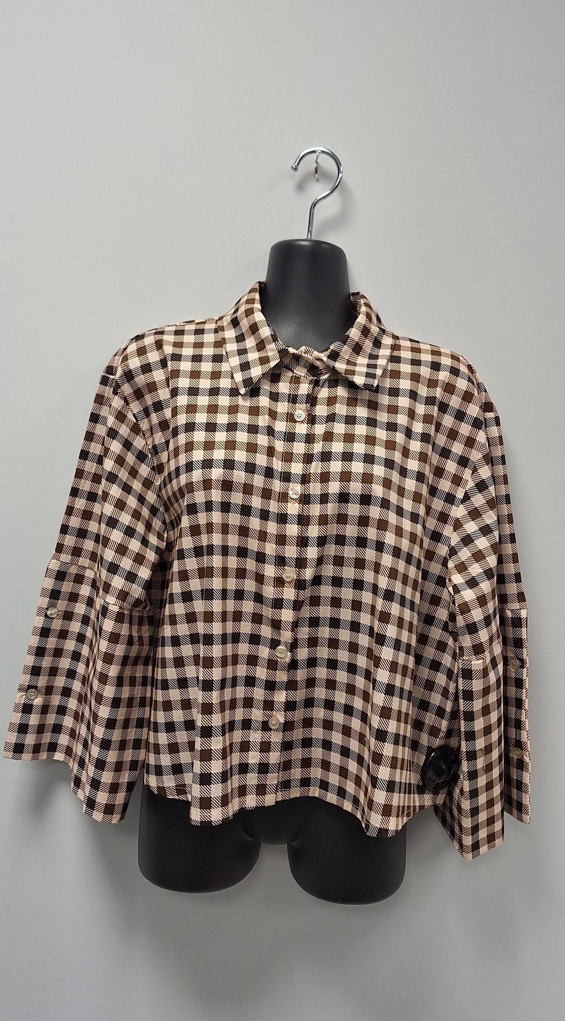 Blouse met lange mouwenRechte snitReverskraagLange mouwenKnoopsluiting aan de voorkant2 klepzakken met knoop op de borst...