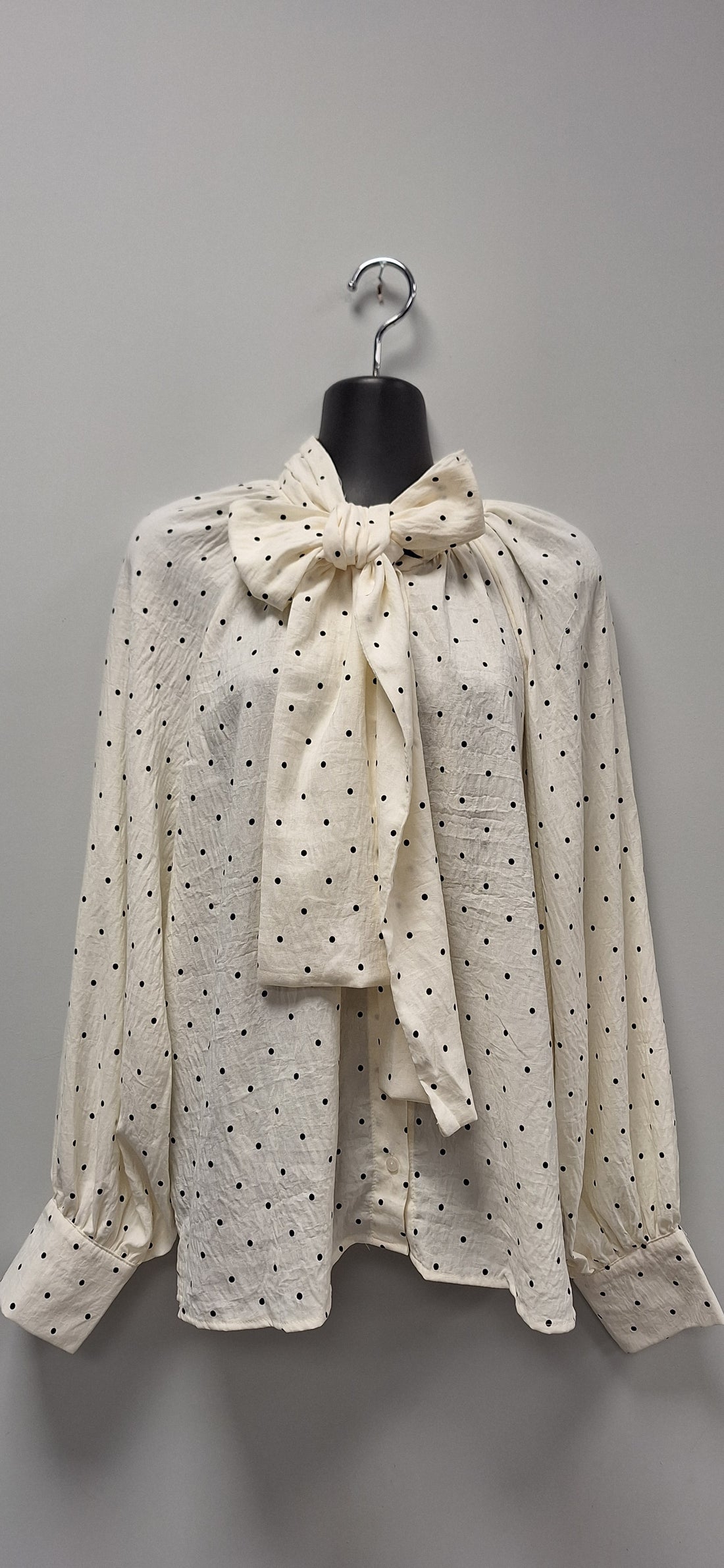 Elegant, vrouwelijk en tijdloos deze prachtige blouse met speelse stippen is een echte eyecatcher! Een...