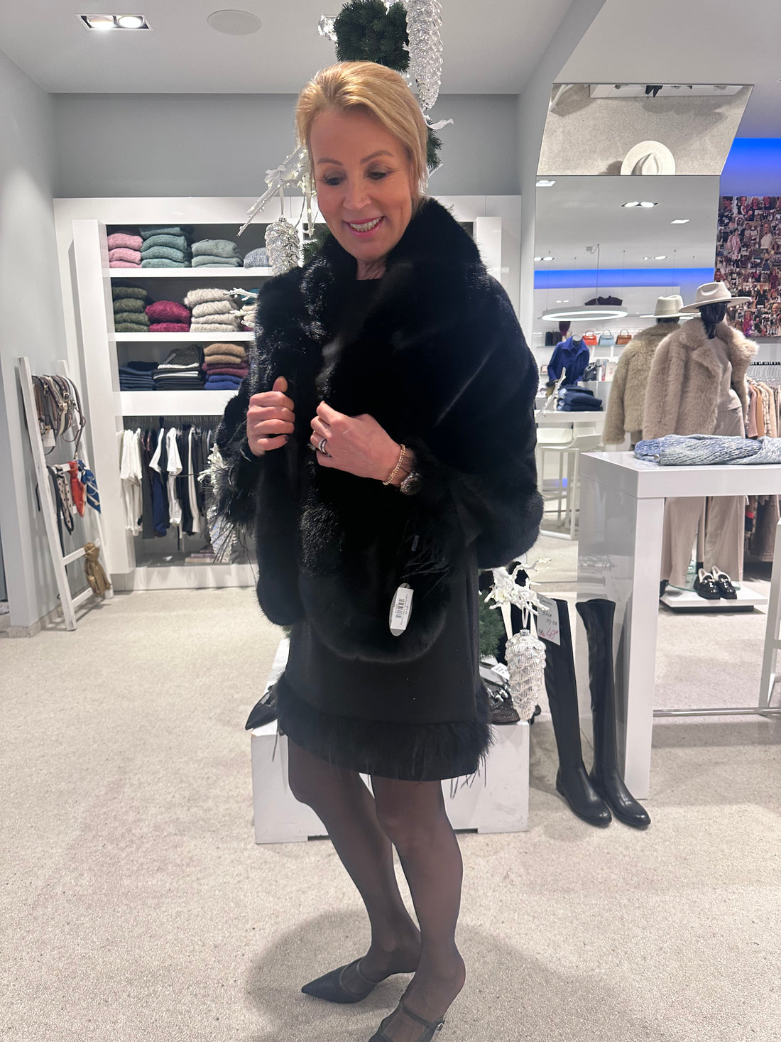 Voeg moeiteloos elegantie en warmte toe aan elke outfit met deze luxe zwarte faux fur...