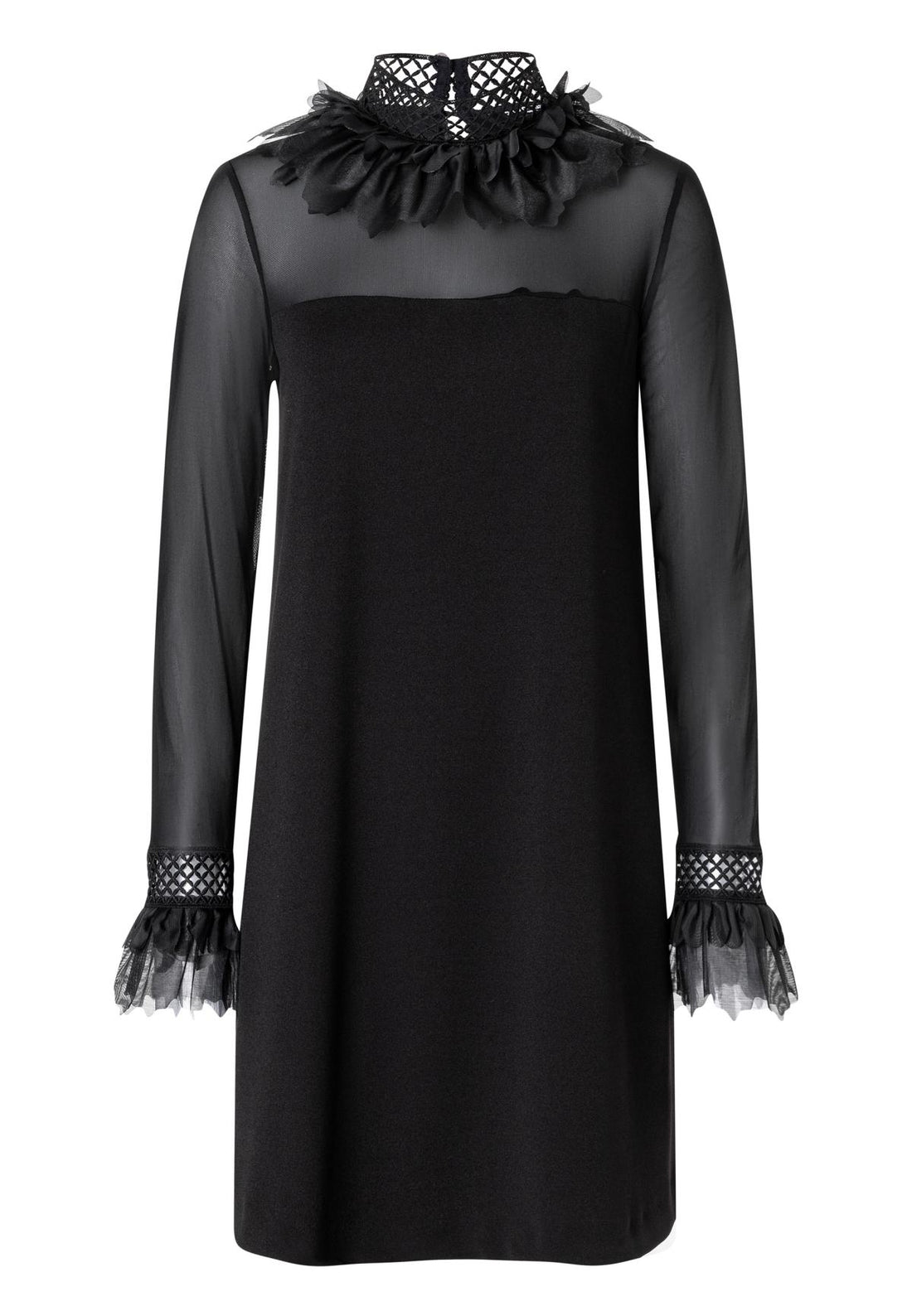 Deze elegante zwarte jurk is een stijlvolle keuze voor bijzondere gelegenheden. De transparante meshdetails op...