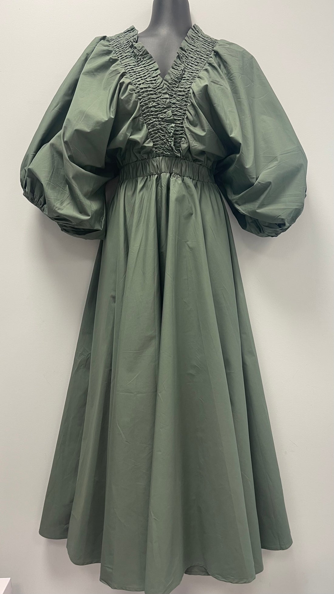 Prachtige donkergroene lange japon Elegante japon in een diepe donkergroene tint, met charmante pofmouwen, een...