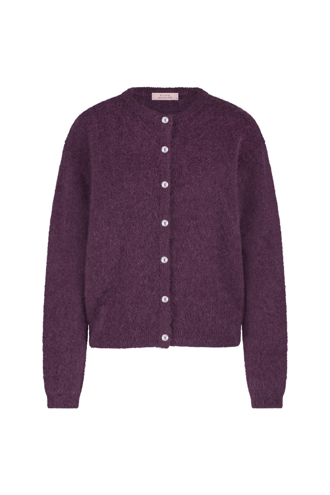De Bibi mohair cardigan in de kleur Blackberry is een elegant vest met een moderne...