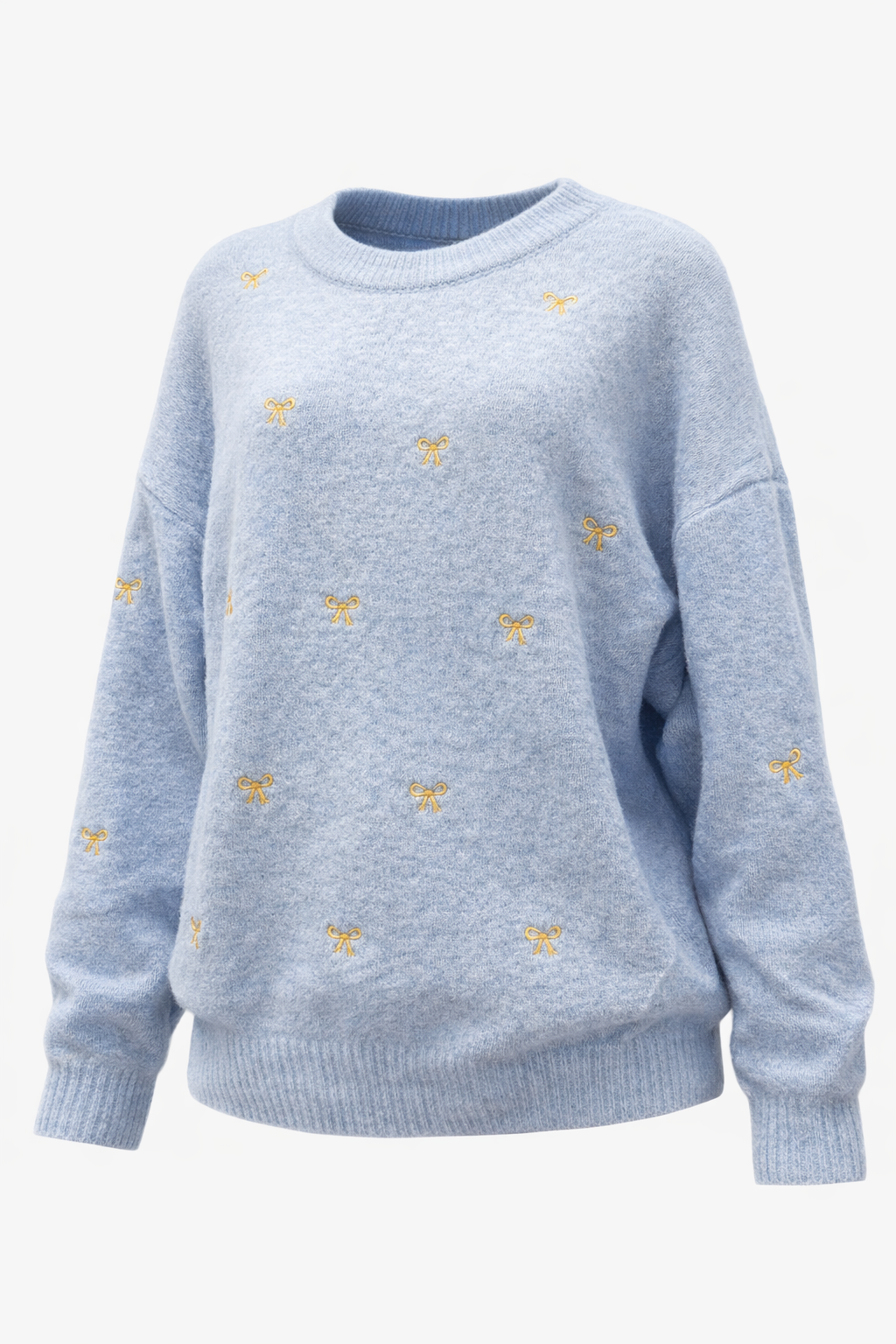 Deze trui is een echte eyecatcher. De subtiele gouden geborduurde strikjes geven de trui een...