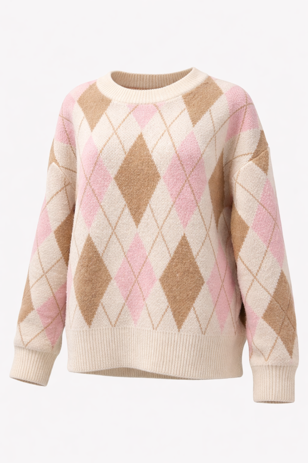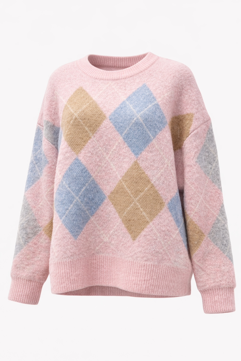 Deze pastel argyle trui is een echte must-have voor een zachte, stijlvolle look De lichtroze...