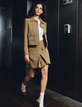 De korte, rechtvallende snit en de opvallende gouden knopen geven het jasje een chique uitstraling.