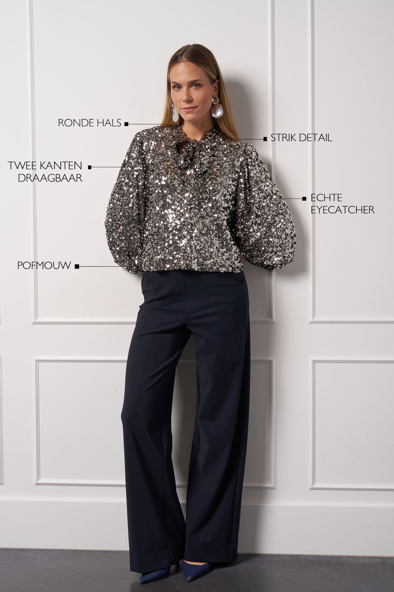 Zilver straalt luxe en verfijning uit en geeft elke outfit een stijlvolle twist. Combineer de top met een zwarte pantalon of een elegante rok voor een chique avondlook. Draag haar met hakken voor extra glamour of juist met een stoere broek voor een modern contrast. Extra leuk: je kunt de top aan twee kanten dragen, waardoor je met één item meerdere looks kunt creëren
