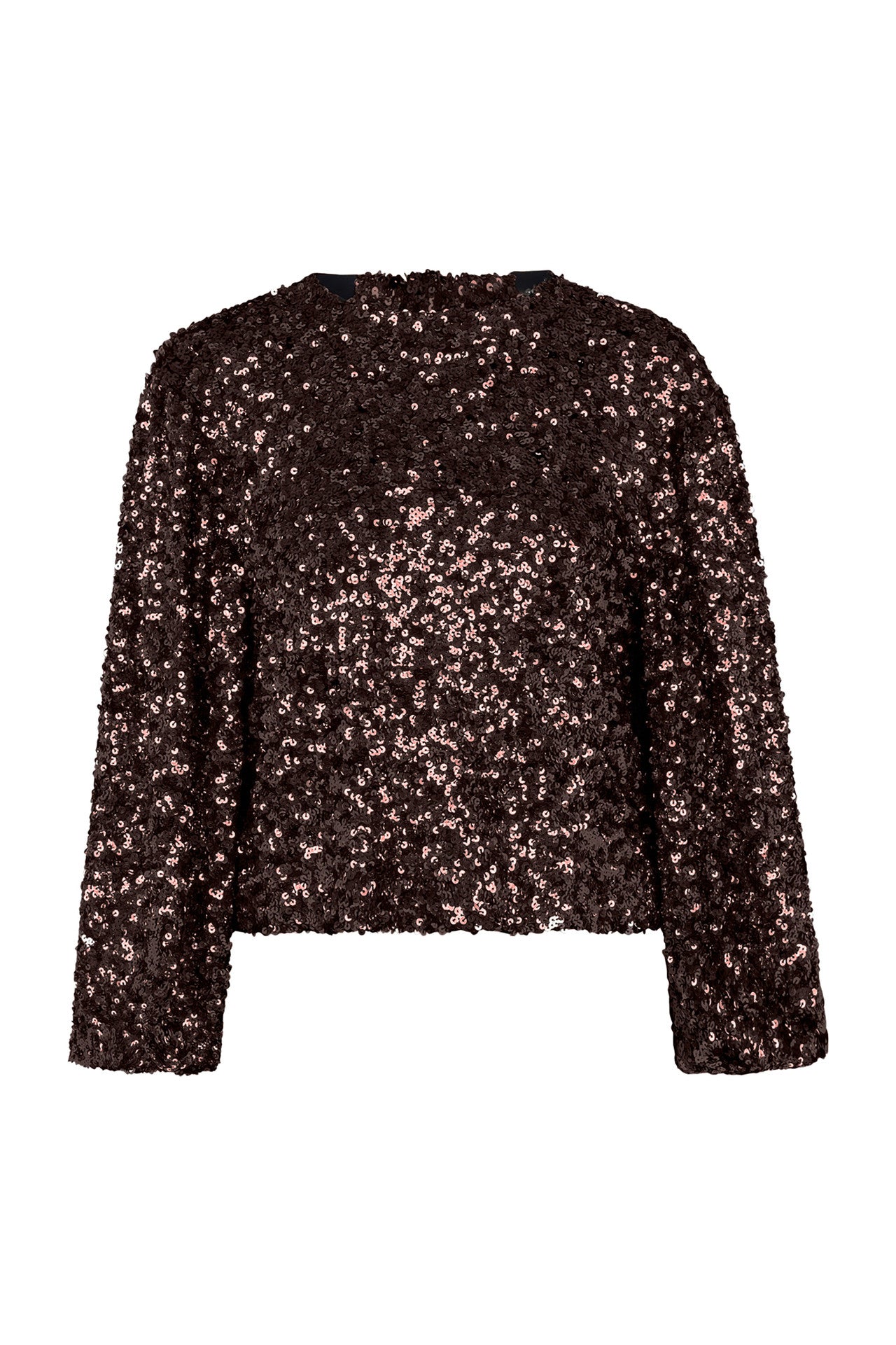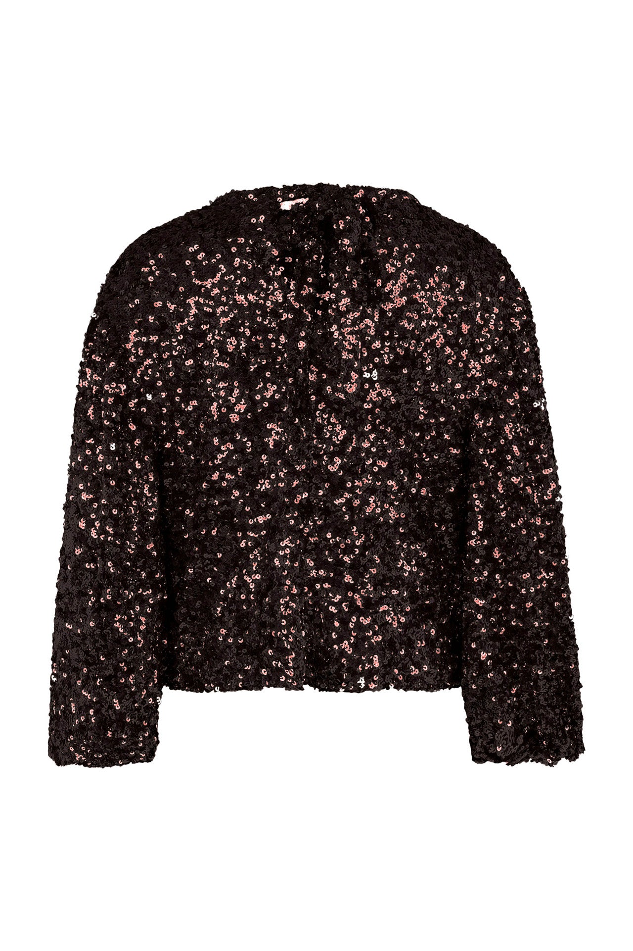 De Blom 2way sequins top is een uitgesproken feestelijk item met een vrouwelijke touch. De pailletten zorgen voor een opvallende glans die elke outfit direct een elegante uitstraling geeft. De pofmouwen voegen volume toe en zorgen voor een speelse balans in het silhouet. Door de regular fit valt de top mooi langs het lichaam en zit hij comfortabel, zelfs tijdens een lange avond.
