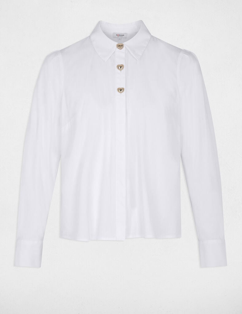 De blouse krijgt een speelse, vrouwelijke touch door de hartvormige knopen in goudkleurige look aan de bovenkant, wat zorgt voor nét dat beetje extra uitstraling.