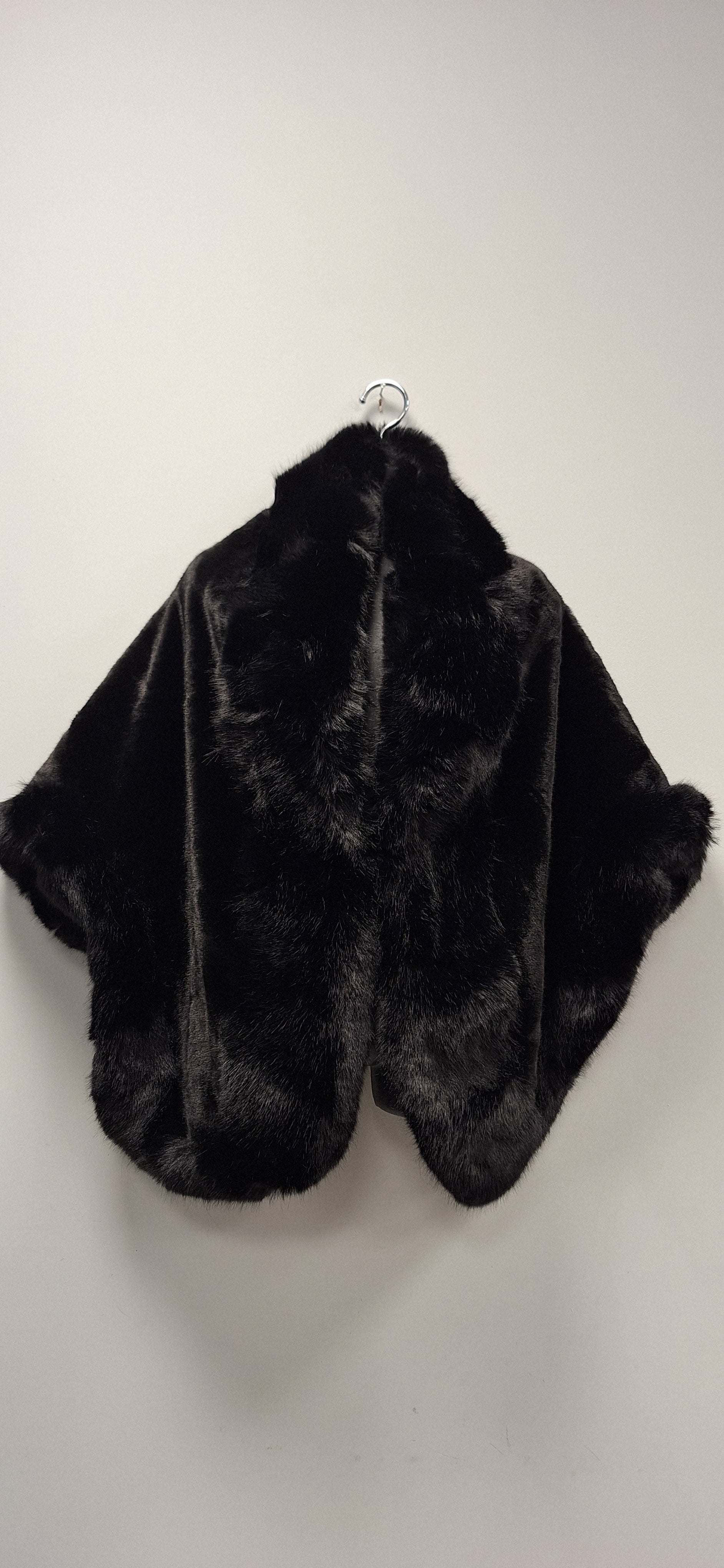 Voeg moeiteloos elegantie en warmte toe aan elke outfit met deze luxe zwarte faux fur cape.