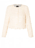 Dit zachte, crèmekleurige vestje met subtiele pailletten geeft elke outfit een stijlvolle touch. Het korte, rechte model en de ronde hals zorgen voor een moderne en vrouwelijke uitstraling. Ideaal om te dragen over een blouse of top, zowel casual als gekleed.