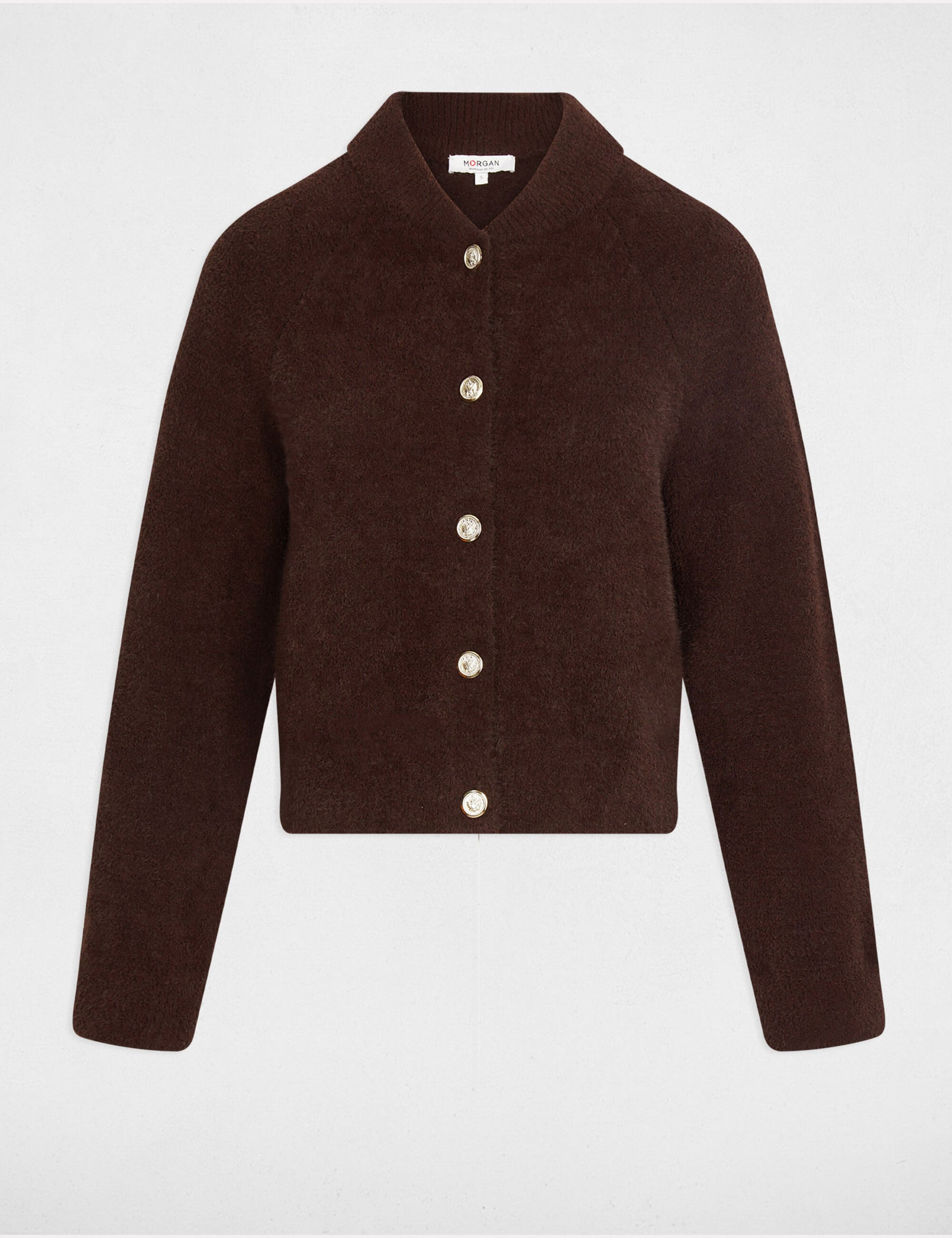 Geef je outfit direct een cozy, stijlvolle upgrade met dit chocoladebruine cardigan.