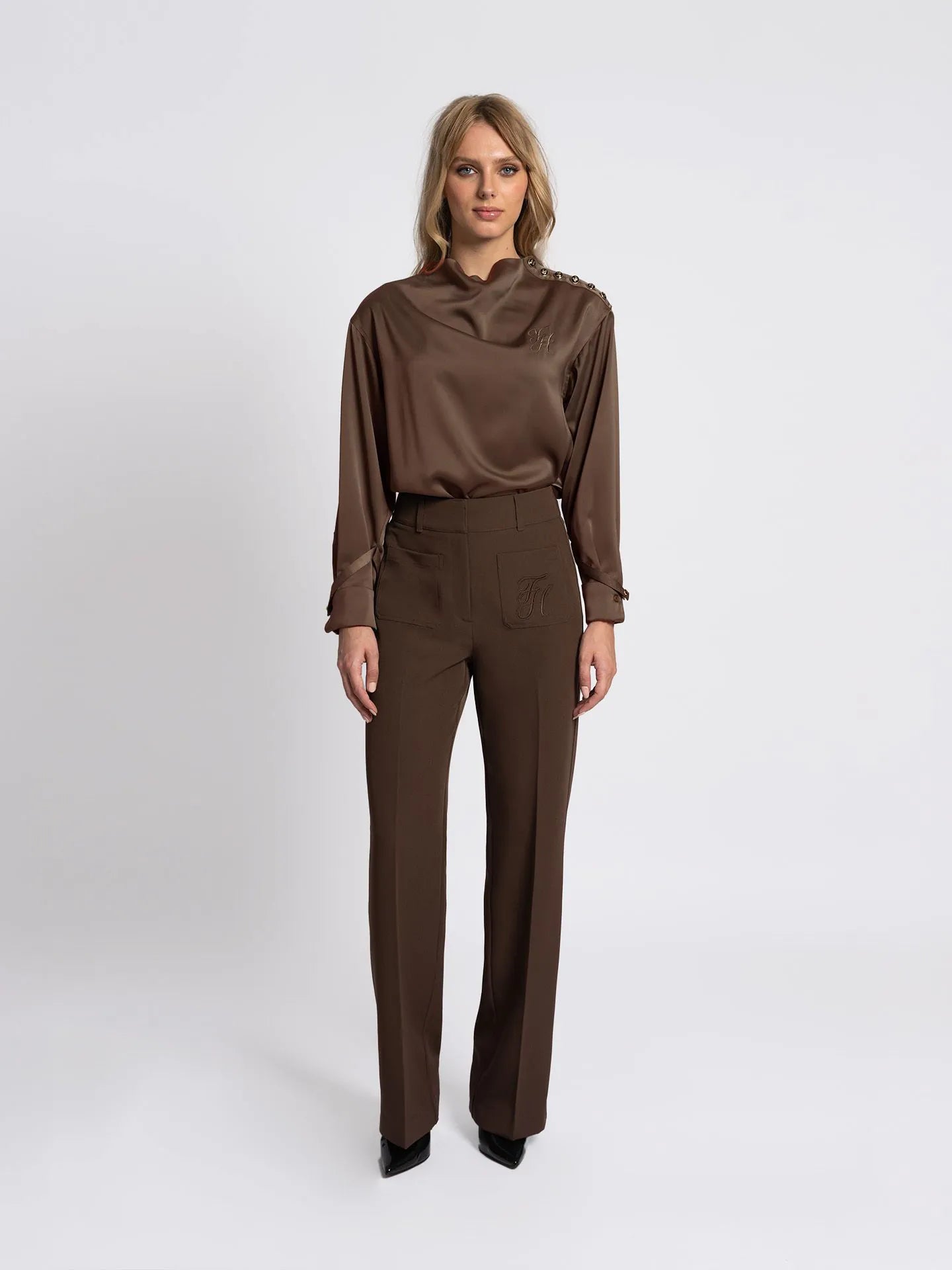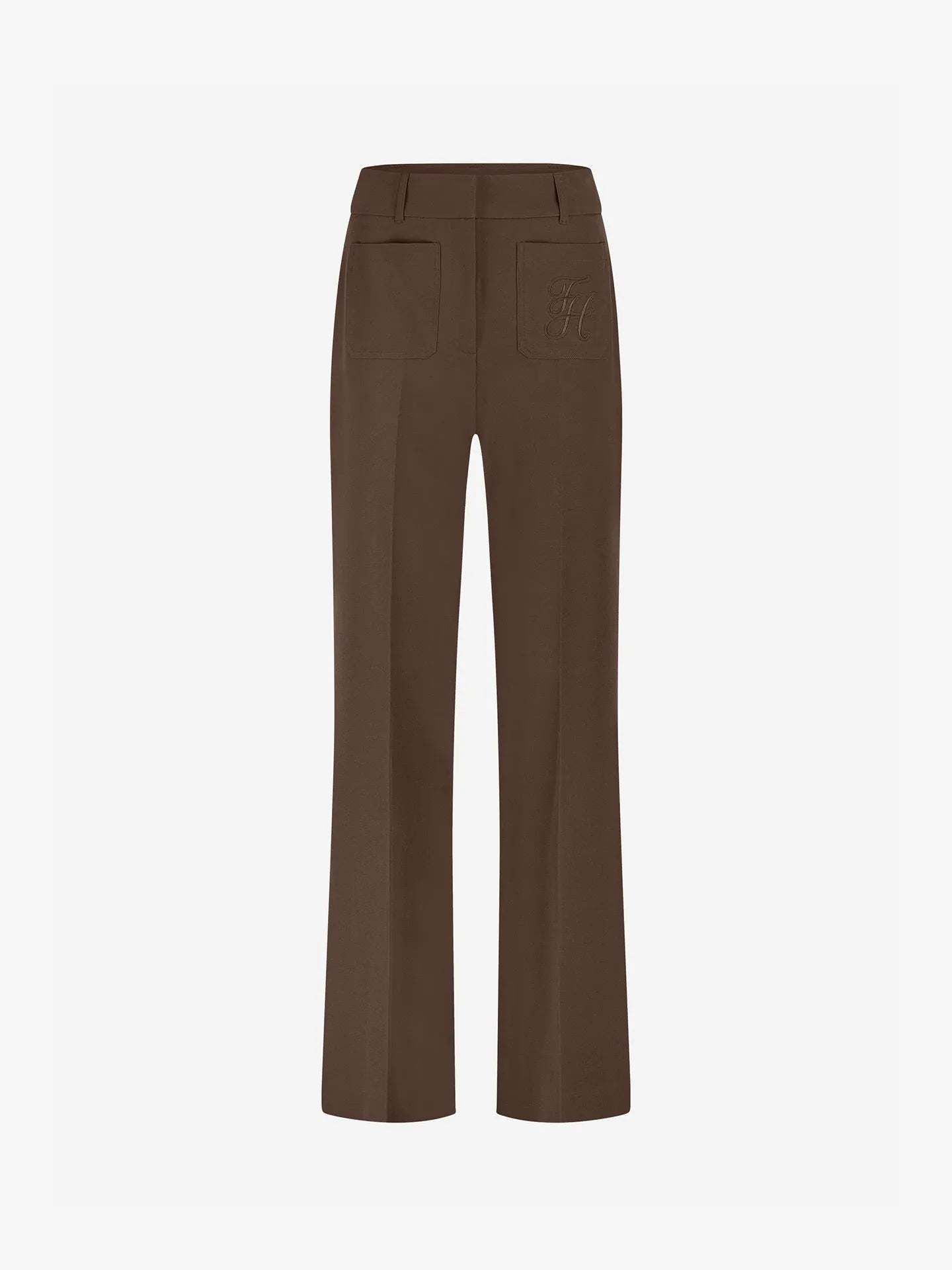 Klassieke pantalon met een middelhoge taille, persvouwen en een ritssluiting met haak- en oogsluiting. De broek is voorzien van zakken, een geborduurd logo en een normale pasvorm.