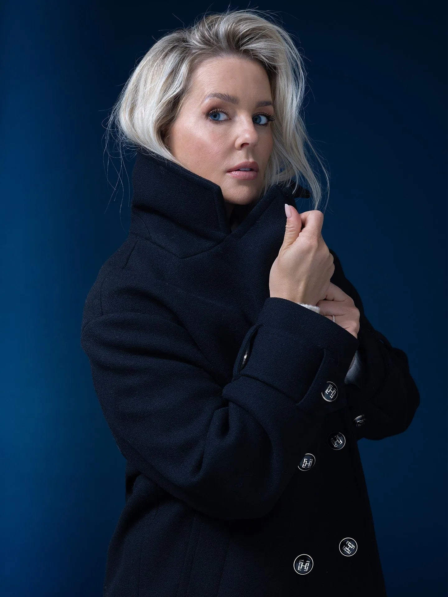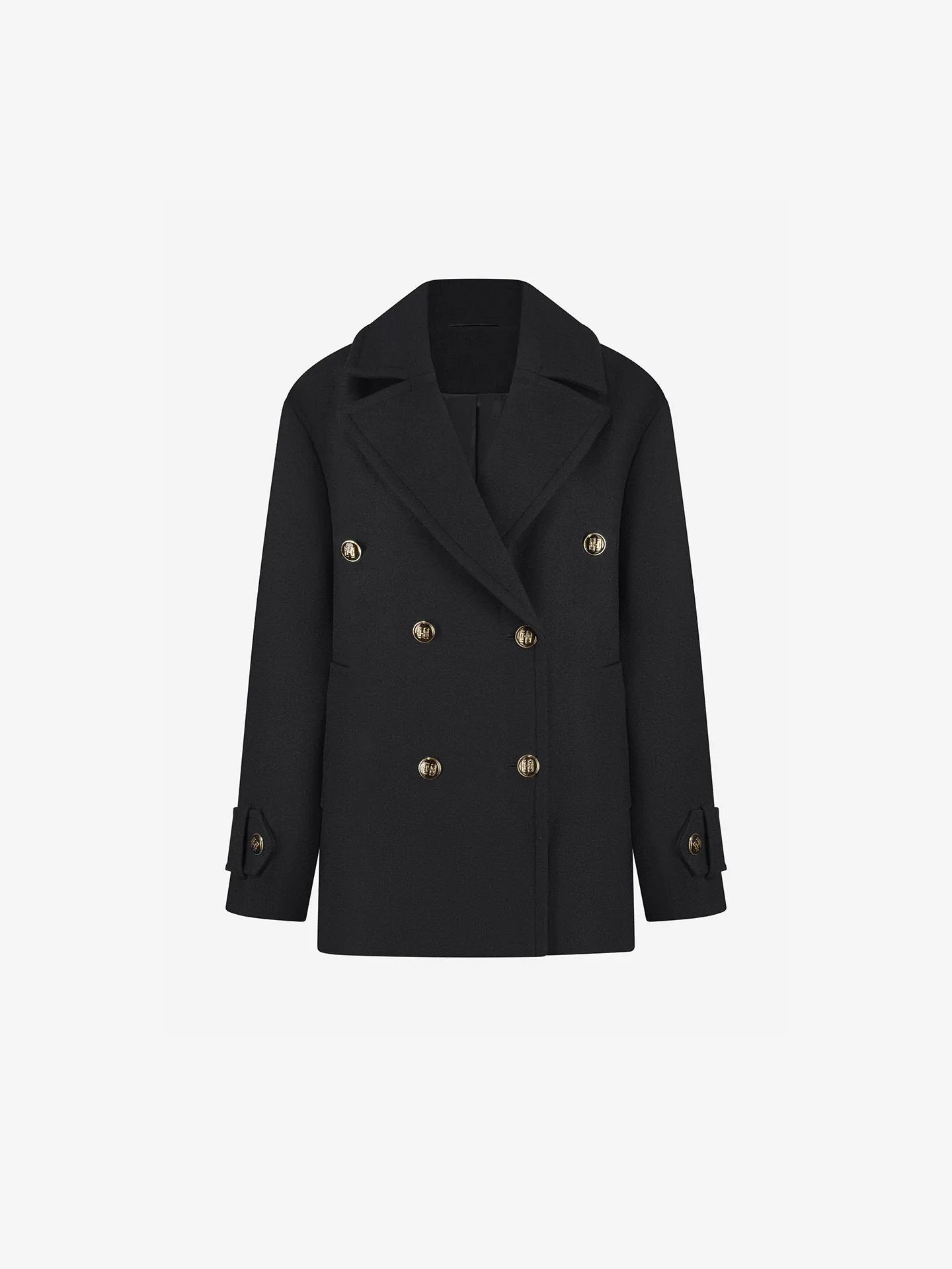 Losvallende jas van wolmix met een double-breasted knoopsluiting, een kraag en zakken.