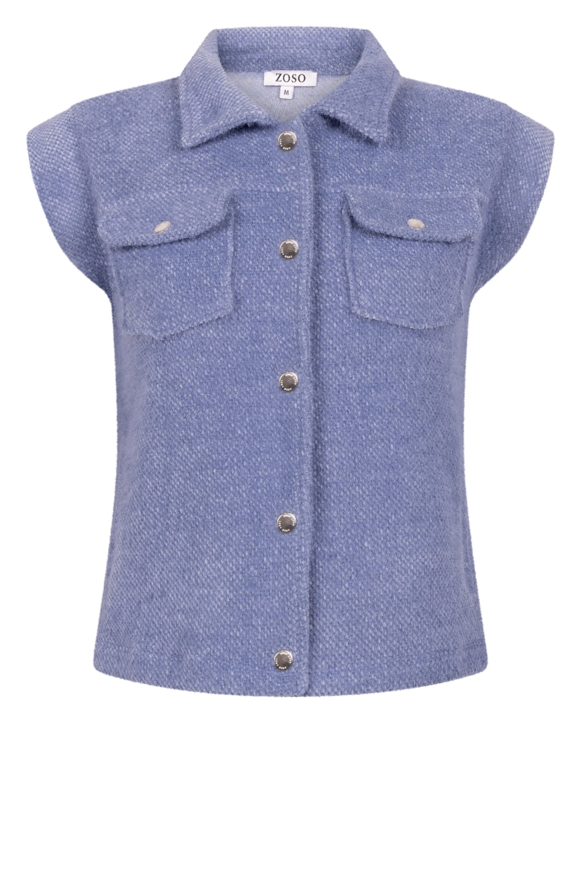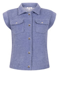 Dit stijlvolle gilet is een echte eyecatcher voor dit seizoen. Uitgevoerd in een zachte blauw gemêleerde stof en afgewerkt met zilverkleurige drukknoopsluiting, combineert het moeiteloos comfort met een moderne uitstraling. De opgestikte borstzakken geven het ontwerp een stoere touch, terwijl de mouwloze snit zorgt voor een elegante, vrouwelijke look.