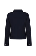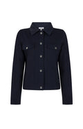 Jacket Veronica Navy is een stijlvolle, donkerblauwe jasje met zilverkleurige knopen en klepzakken op de borst.