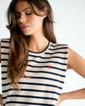 De mouwloze snit en ronde hals maken dit item perfect voor zowel warme dagen. De subtiele geborduurde detail op de borst voegt een speelse, verfijnde touch toe.