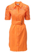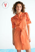 Deze stijlvolle oranje blousejurk combineert een vrouwelijke uitstraling met een frisse, zomerse look.