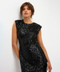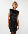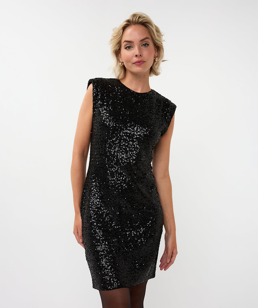 Deze paillettenjurk van Esqualo is gemaakt voor bijzondere momenten. De rechte, elegante pasvorm en de subtiele schouderaccenten geven de jurk een krachtige, vrouwelijke uitstraling. De glanzende pailletten vangen het licht op bij elke beweging — perfect voor een feestelijke avond of diner.