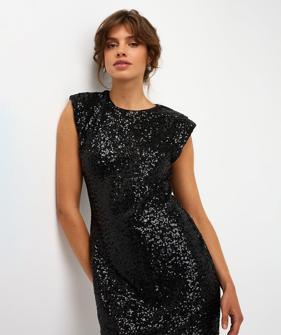 Draag met het bijpassende paillettenjasje en een pump of enkellaarsje een gegarandeerde showstopper voor de feestdagen. 🖤✨