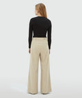 Deze mid rise wide leg pantalon is verlengbaar, dankzij de extra lange zoom. Daarnaast is de pantalon voorzien van elastiek aan de achterzijde voor draagcomfort.