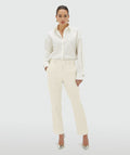 De JOSH V Ryker dames pantalon in de kleur Creme White is onderdeel van een stijlvol damespak en combineer je perfect met de bijpassende Kenny blazer. De mid rise straight fit pantalon is gemaakt van een comfortabele kwaliteit met gerecycled polyester, viscose en stretch. Daarnaast is de tailleband aan de achterzijde voorzien van stretch. Dankzij de verlengbare zoom kan de broek verlengd worden.
