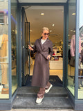 Deze elegante mantel is een tijdloze aanvulling op je garderobe. Het lange, rechte model met strikceintuur accentueert mooi de taille en zorgt voor een vrouwelijk silhouet. De royale reverskraag geeft de jas een chique uitstraling, terwijl de zachte, soepele stof heerlijk comfortabel draagt.