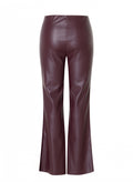 Maak een statement met deze stijlvolle faux leather broek in een diepe burgundy kleur. De flared pijpen zorgen voor een elegante en vrouwelijke uitstraling, terwijl het imitatieleer je look een stoer randje geeft. Ideaal om te combineren met een gebreide trui of een chique blouse.