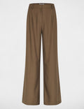 De wijde pijpen geven de broek een moderne uitstraling en maken haar zowel geschikt voor zakelijke als casual looks.