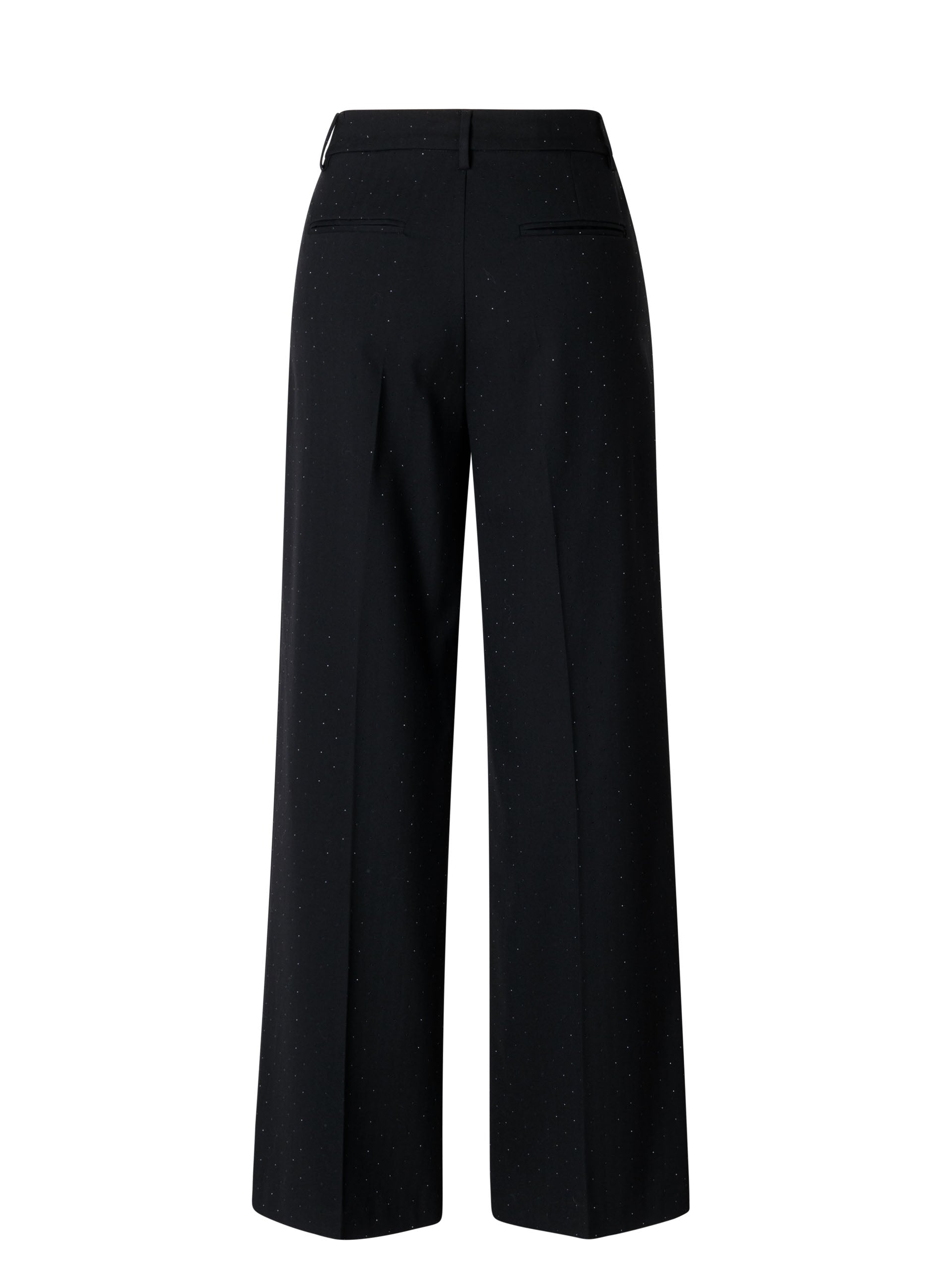 Deze zwarte pantalon van Yest is een stijlvolle klassieker met een subtiele twist. De lichte glans van fijne mini-steentjes zorgt voor een elegant sprankelend effect — perfect voor de feestdagen of een avondje uit. De hoge taille en rechte pijpen geven een mooi, vrouwelijk silhouet en laten zich makkelijk combineren.