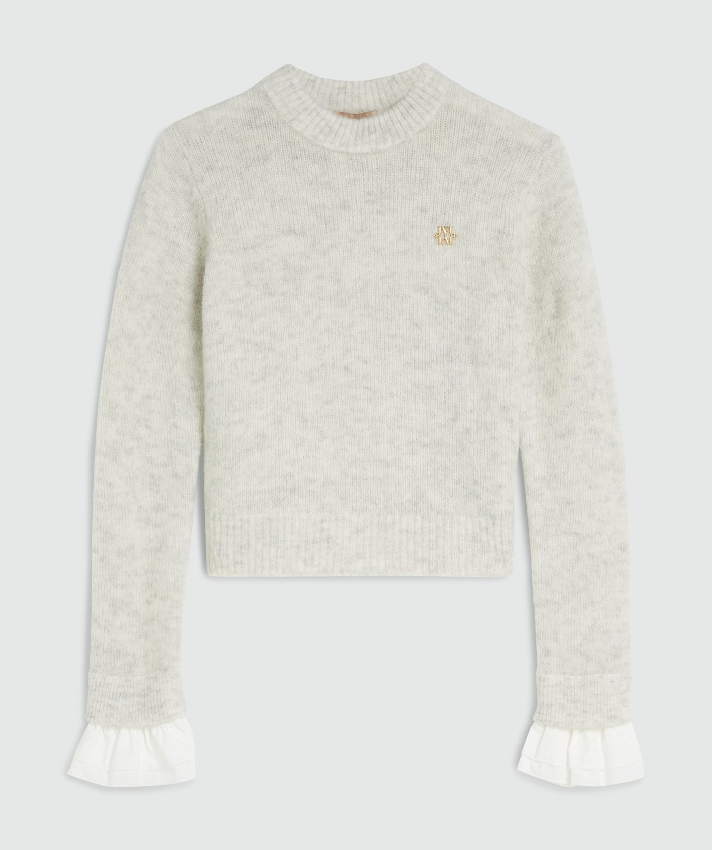 De trui heeft een ronde halslijn en is voorzien van een subtiel JOSH V-logo op de linkerborst. Een opvallend en veelzijdig detail zijn de afneembare ruffle manchetten van katoen poplin, waarmee je eenvoudig kunt variëren in stijl. Combineer de trui met een jeans en sneakers voor een relaxte look