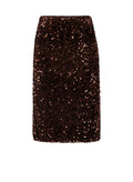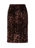 Deze chique paillettenrok in diep chocoladebruin is dé eyecatcher voor het najaar. De rechte, midi-lengte pasvorm zorgt voor een elegante uitstraling, terwijl de glinsterende pailletten zorgen voor dat feestelijke wow-effect. Comfortabel gevoerd en met een subtiele split aan de achterkant voor extra bewegingsvrijheid.