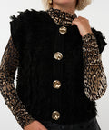 Dit prachtige gilet van Esqualo is een echte blikvanger! De rijke structuur van de stof en de opvallende gouden knopen geven het item een chique, eigentijdse uitstraling. Perfect om je outfit net dat beetje extra te geven.