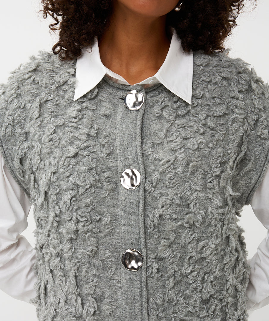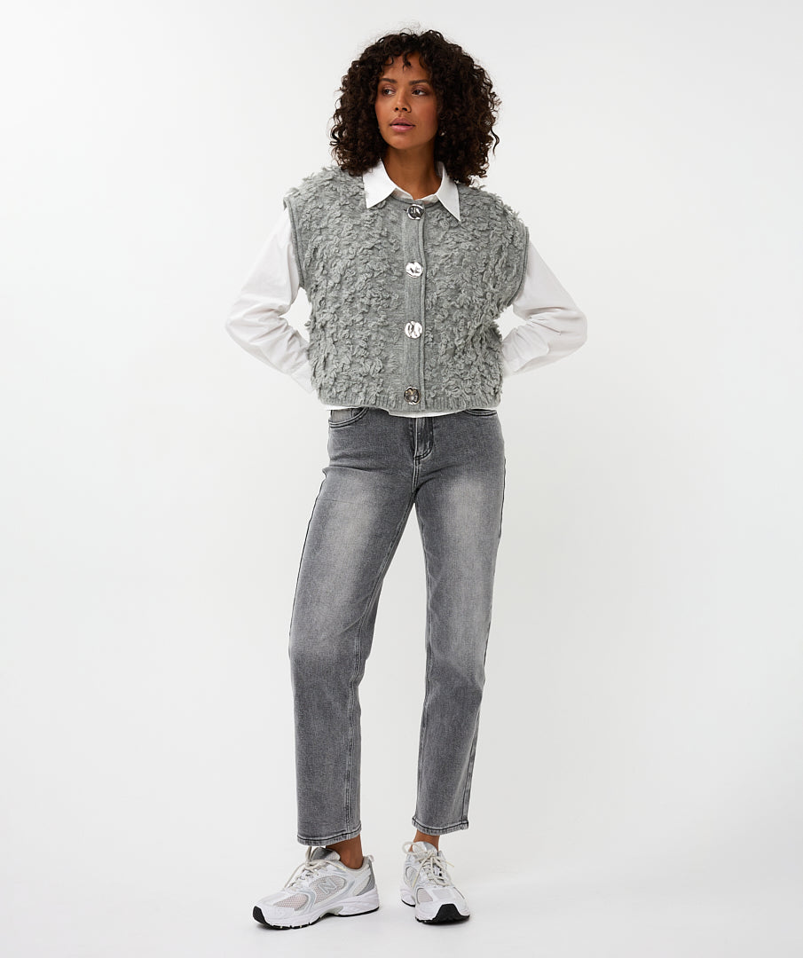 Draag het gilet over een blouse of trui voor een modieuze laagjeslook – zowel casual als gekleed.
