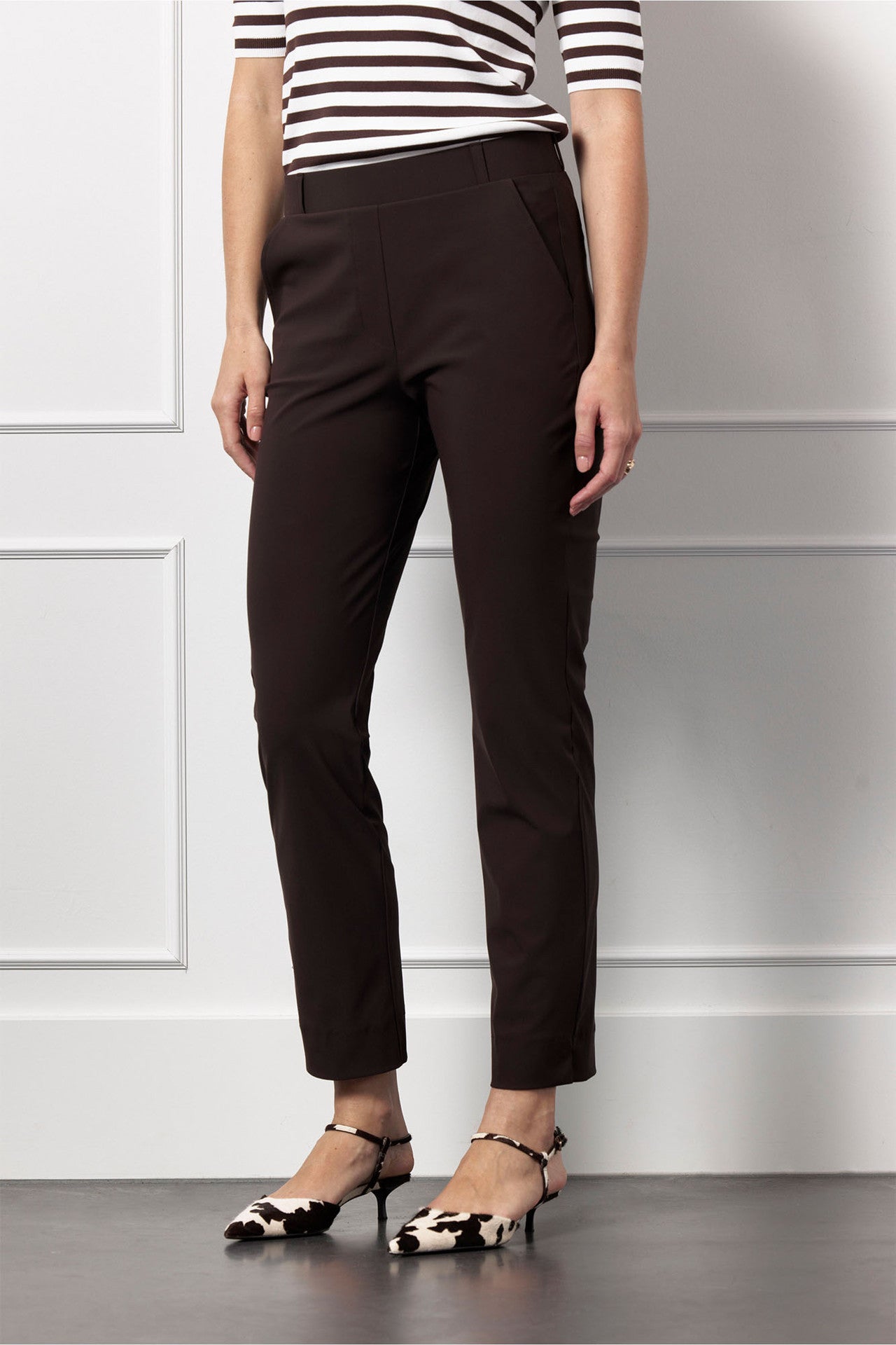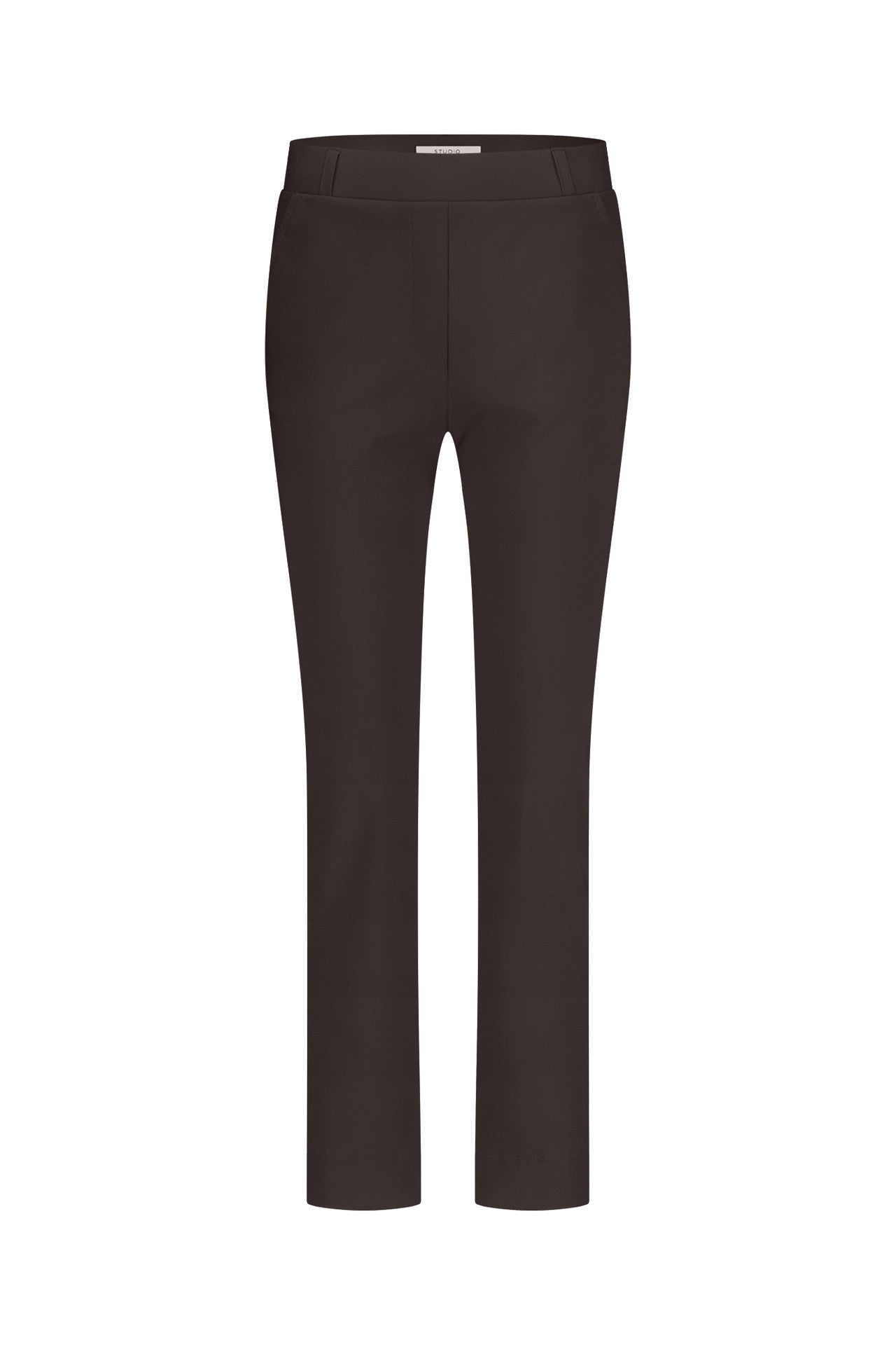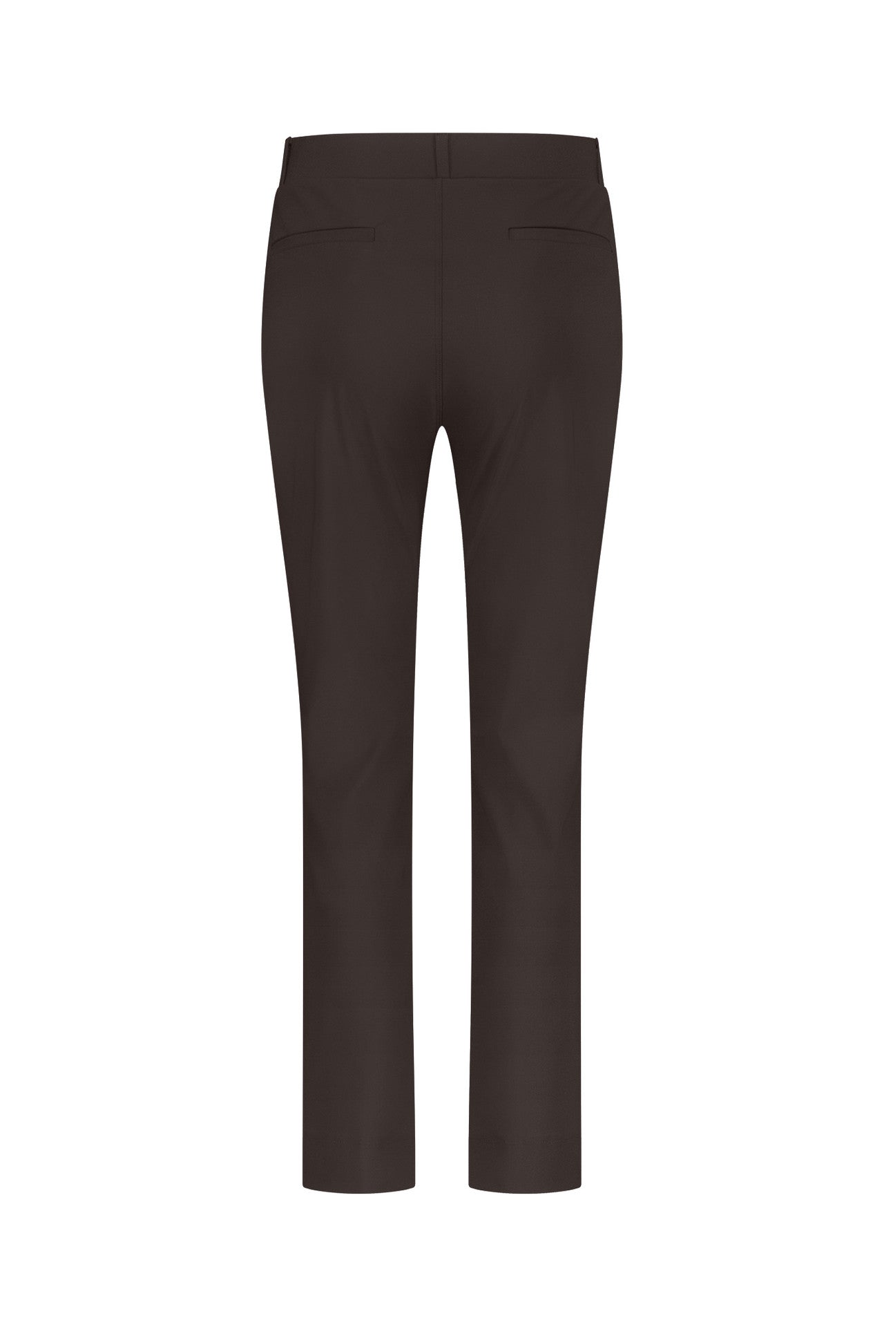 Deze bruine broek is uitgevoerd in de kleur Espresso. Een warme, diepe tint die makkelijk combineert met lichte of ton-sur-ton kleuren. De Bonded Travelstof is stevig maar soepel, biedt comfortabele stretch en blijft mooi in vorm. Daarbij is de stof ademend en kreukvrij.