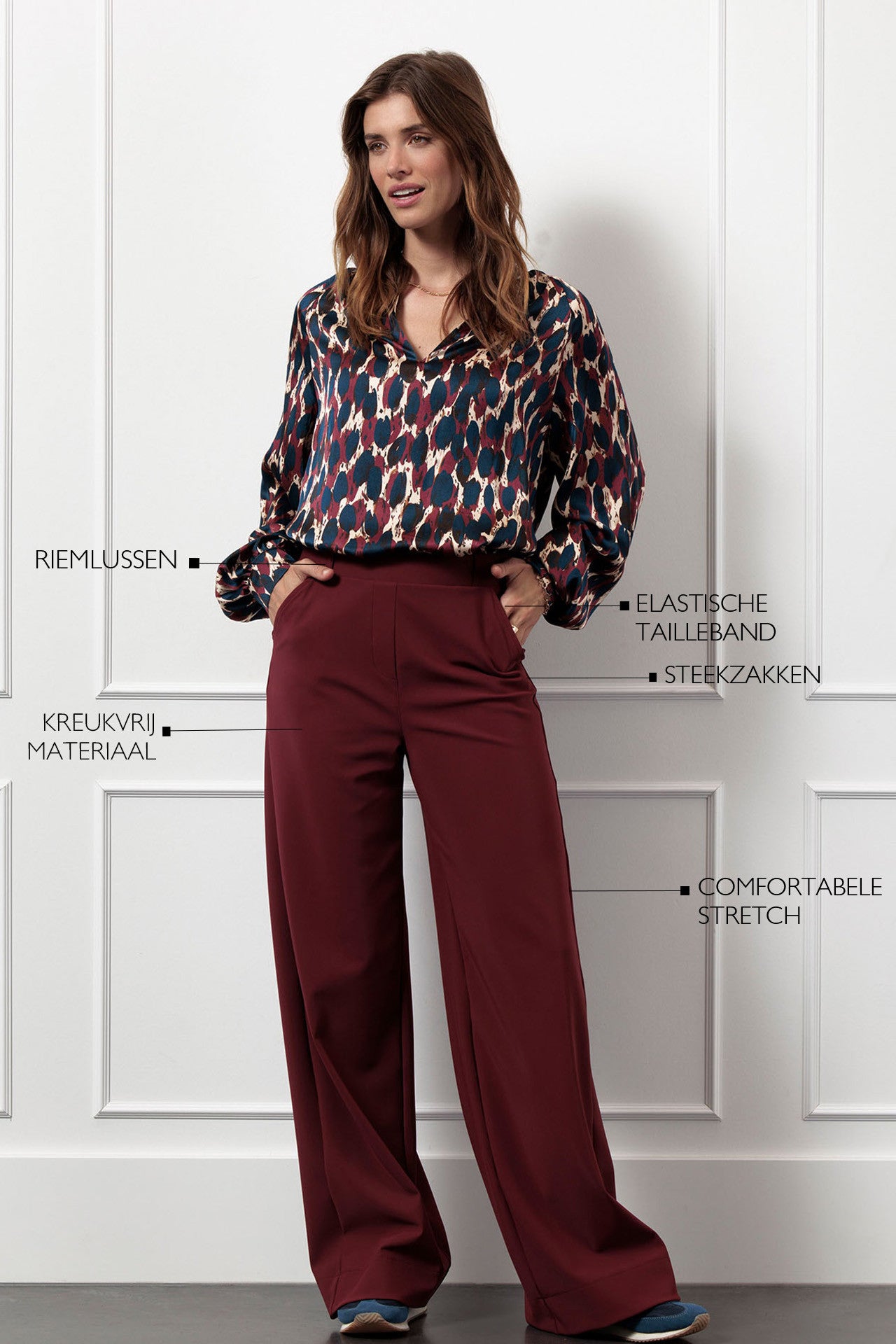 De Lexie bonded trousers van Studio Anneloes combineert stijl en comfort in een moderne, flatterende pasvorm. Deze high-waisted broek, uitgevoerd in de diepe kleur Bordeaux, heeft een elegante wide fit die zorgt voor een tijdloos silhouet. Gemaakt van kreukvrije Bonded Travelstof, biedt deze broek comfortabele stretch en blijft hij de hele dag mooi in model. De elastische tailleband en praktische steekzakken maken de Lexie bonded trousers zowel stijlvol als functioneel.