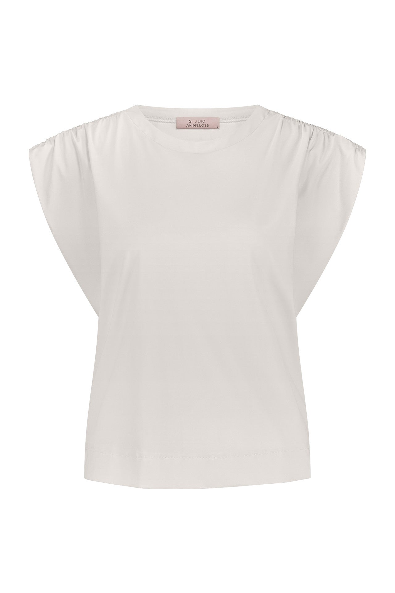De Lois top van Studio Anneloes is een minimalistische essential met verfijnde details. De subtiele plooien op de schouders zorgen voor een vrouwelijke touch.