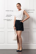 In combinatie met de mouwloze snit en het luchtige materiaal is dit de top voor een stijlvolle dag met een stukje comfort.