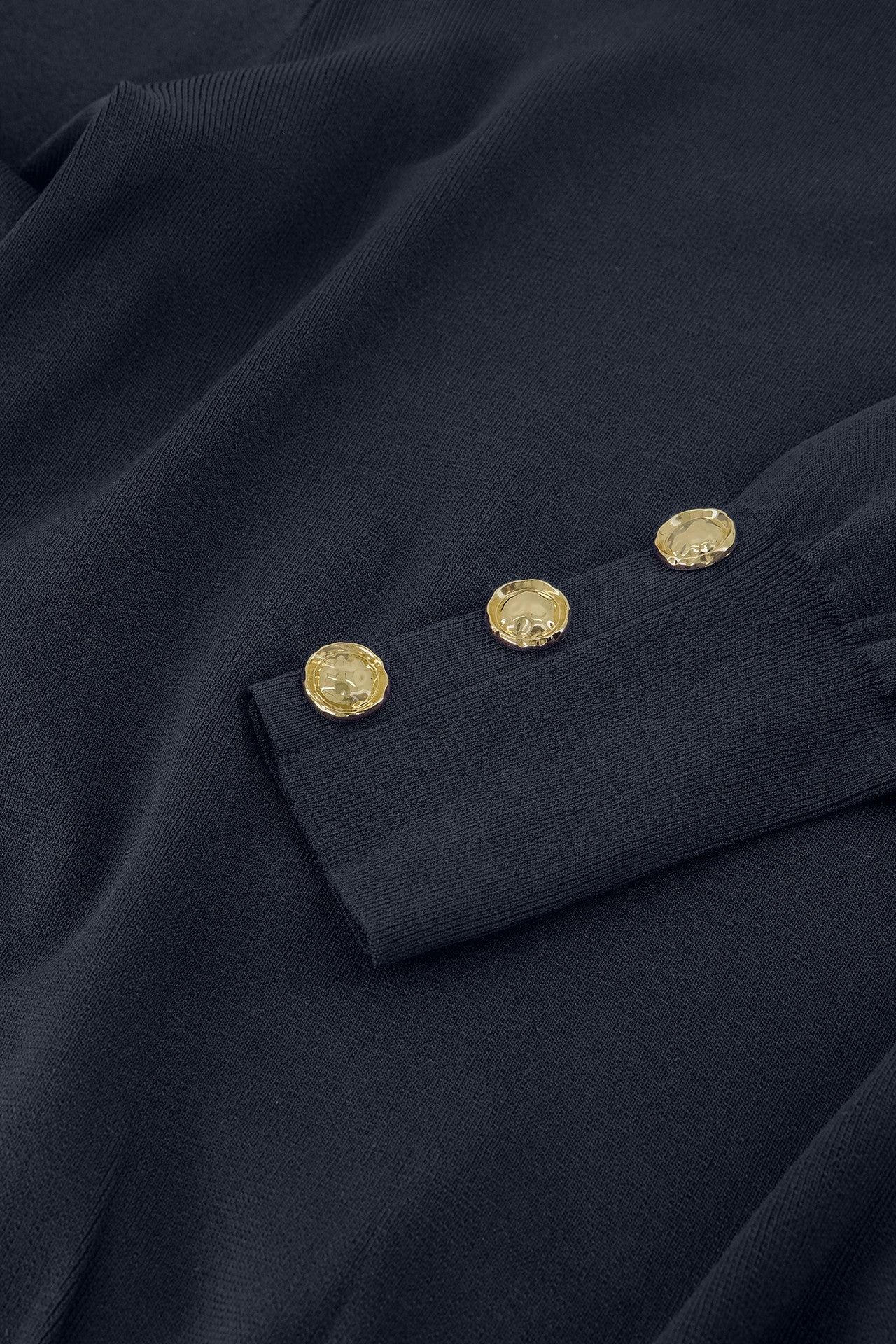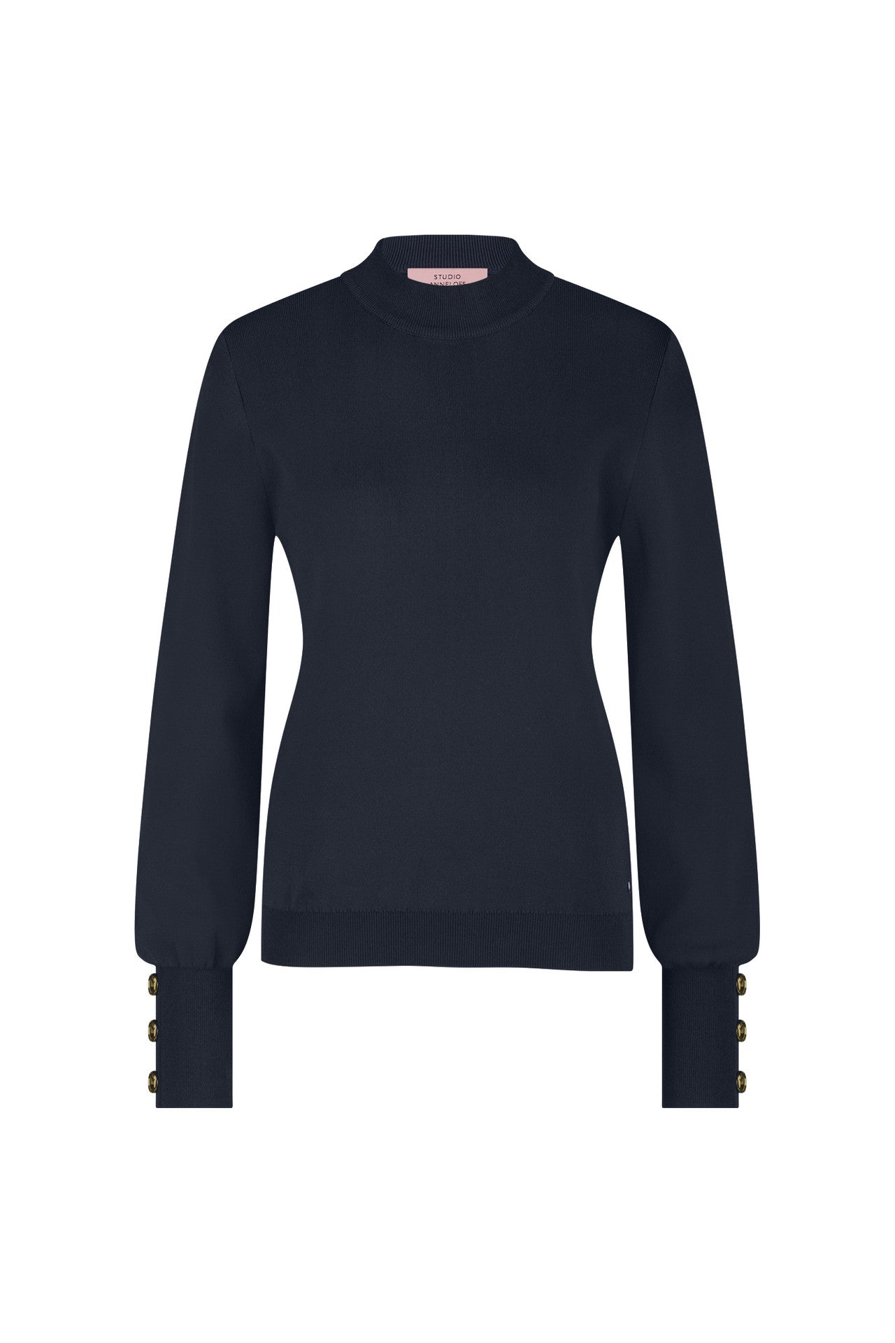 De Luna col pullover van Studio Anneloes is de perfecte aanvulling van jouw knitwear-collectie. Deze stijlvolle trui in Dark Blue heeft een verfijnde col, elegante mouwen én gouden sierknopen als subtiele eyecatchers. Een klassieker met een moderne twist.