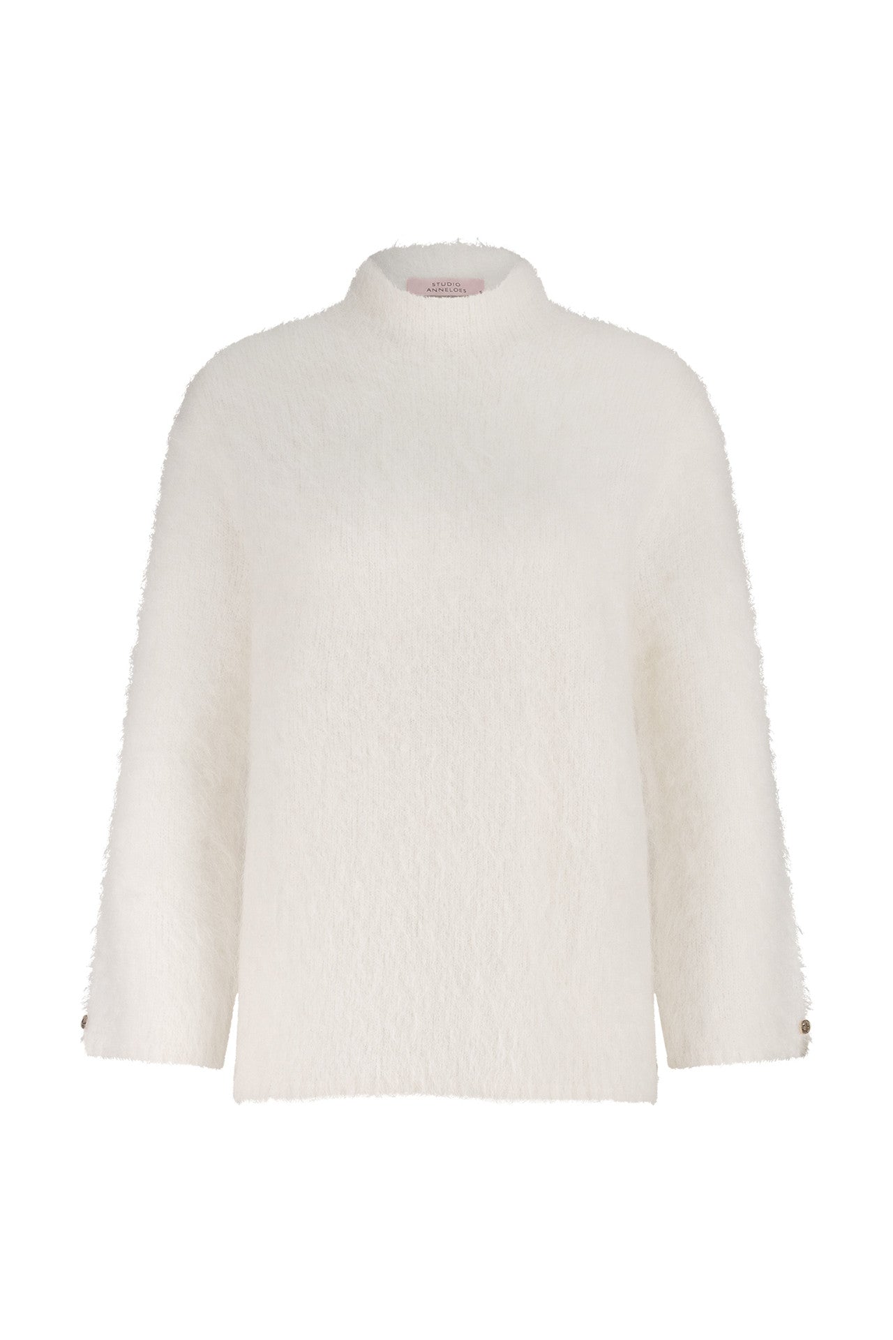 De Marelle pullover van Studio Anneloes is een zachte, warme knit met een moderne uitstraling. De harige textuur, vrouwelijke pasvorm en elegante opstaande kraag maken dit item tot een stijlvolle essential voor het najaar.