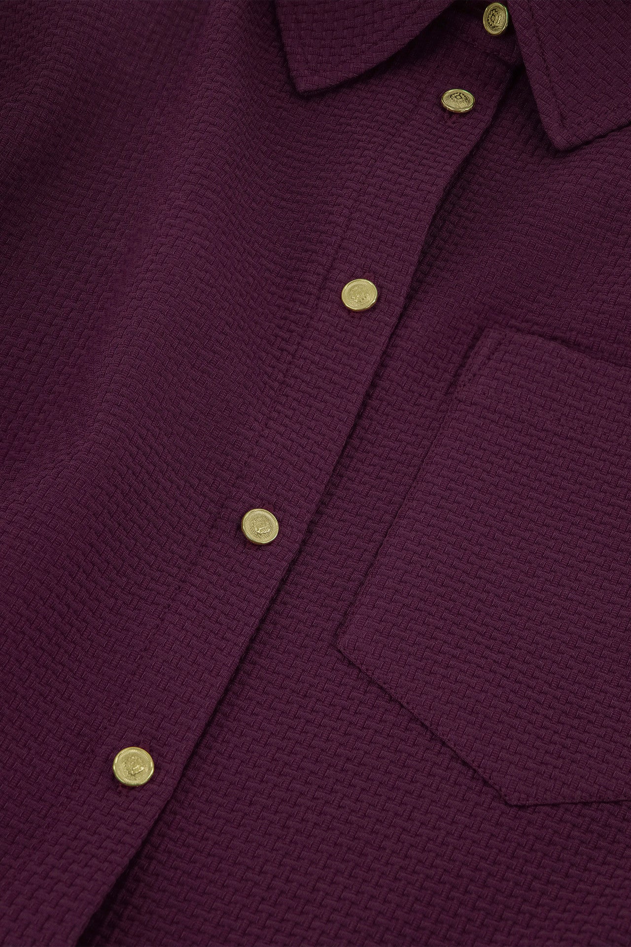 Dankzij de regular fit en het stevige materiaal met wafelstructuur voelt deze blouse als een comfortabele tussenlaag met een luxe uitstraling. De gouden knopen en de borstzak zorgen voor een stijlvolle, casual look.