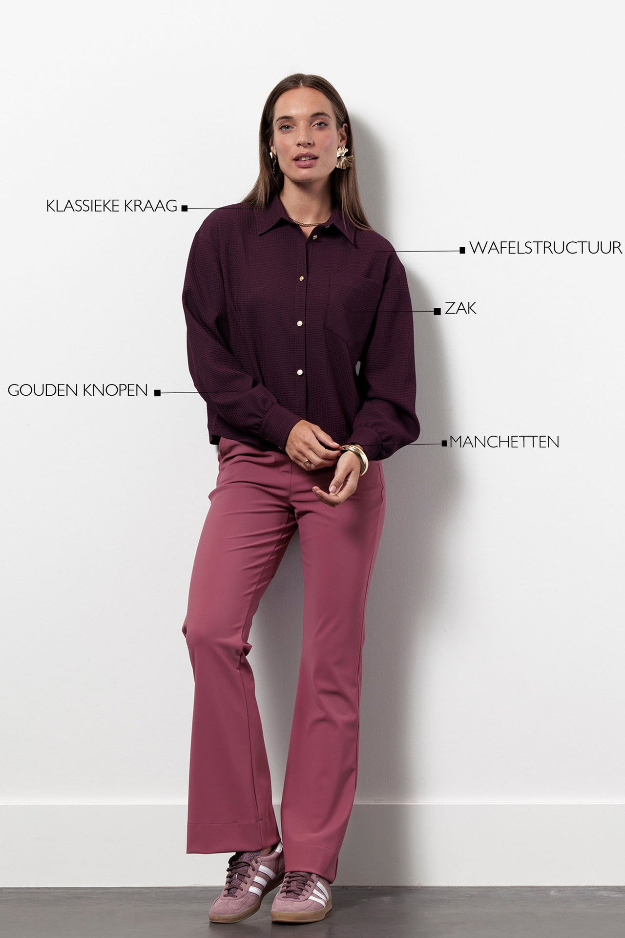 De Melani waffle blouse van Studio Anneloes in de kleur Blackberry is een veelzijdig item dat je kunt dragen als blouse of als luchtig jasje.