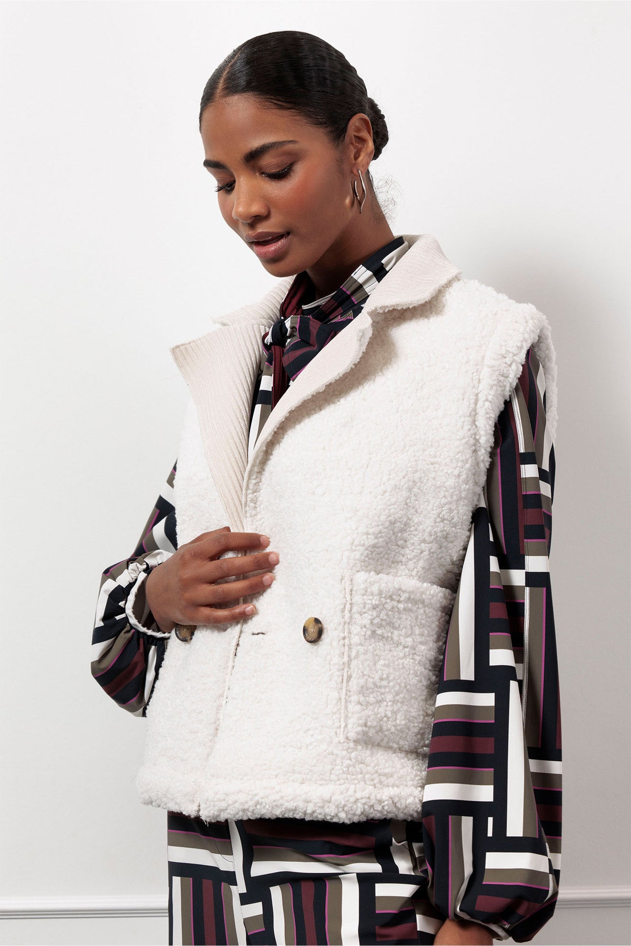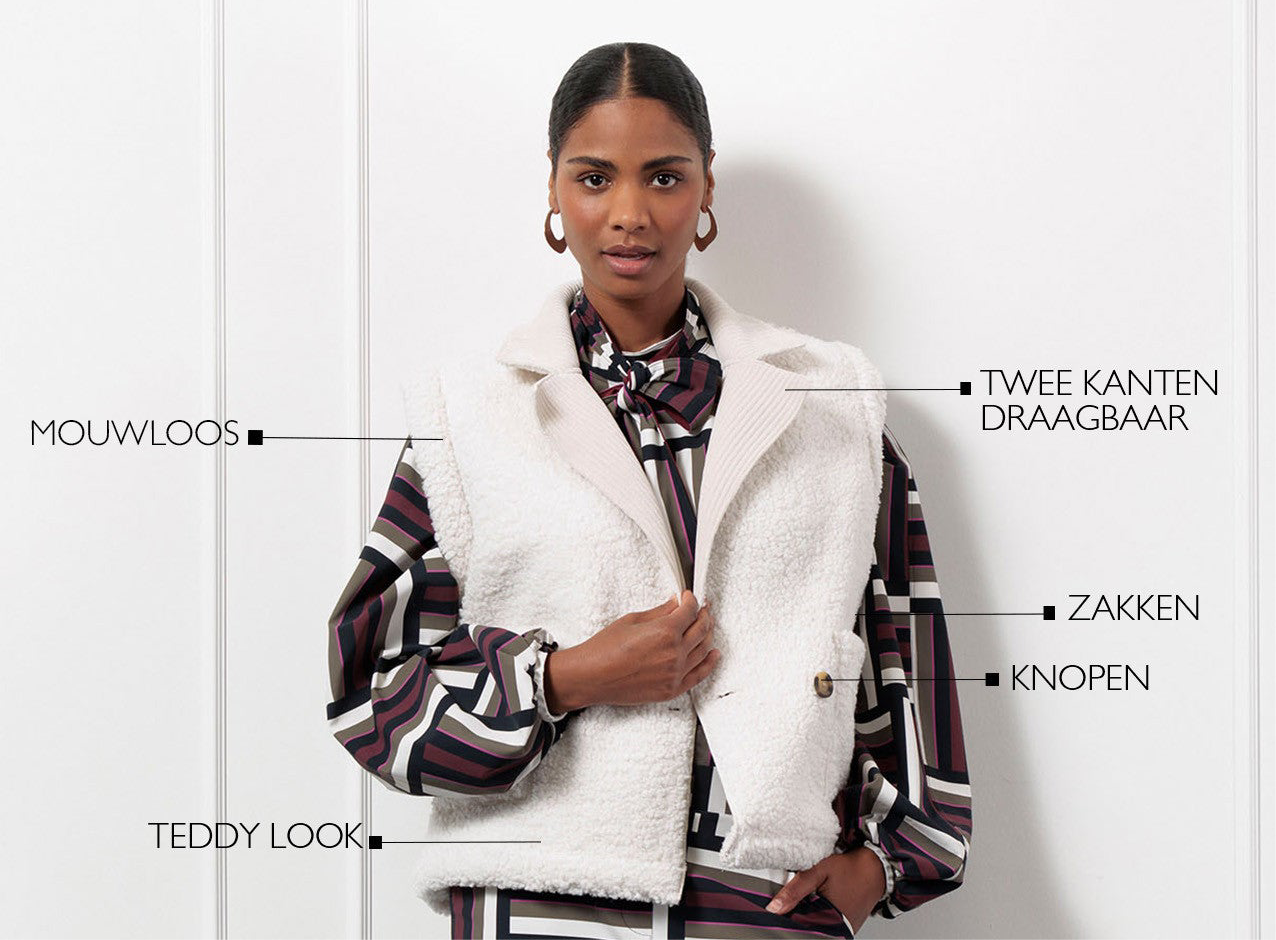 Het Nikita teddy 2way gilet van Studio Anneloes is hét item voor wie houdt van gelaagdheid en comfort. Met z’n zachte teddy aan de ene kant en ribcord aan de andere kant draag je dit gilet op twee manieren. Warm, stijlvol en verrassend veelzijdig.