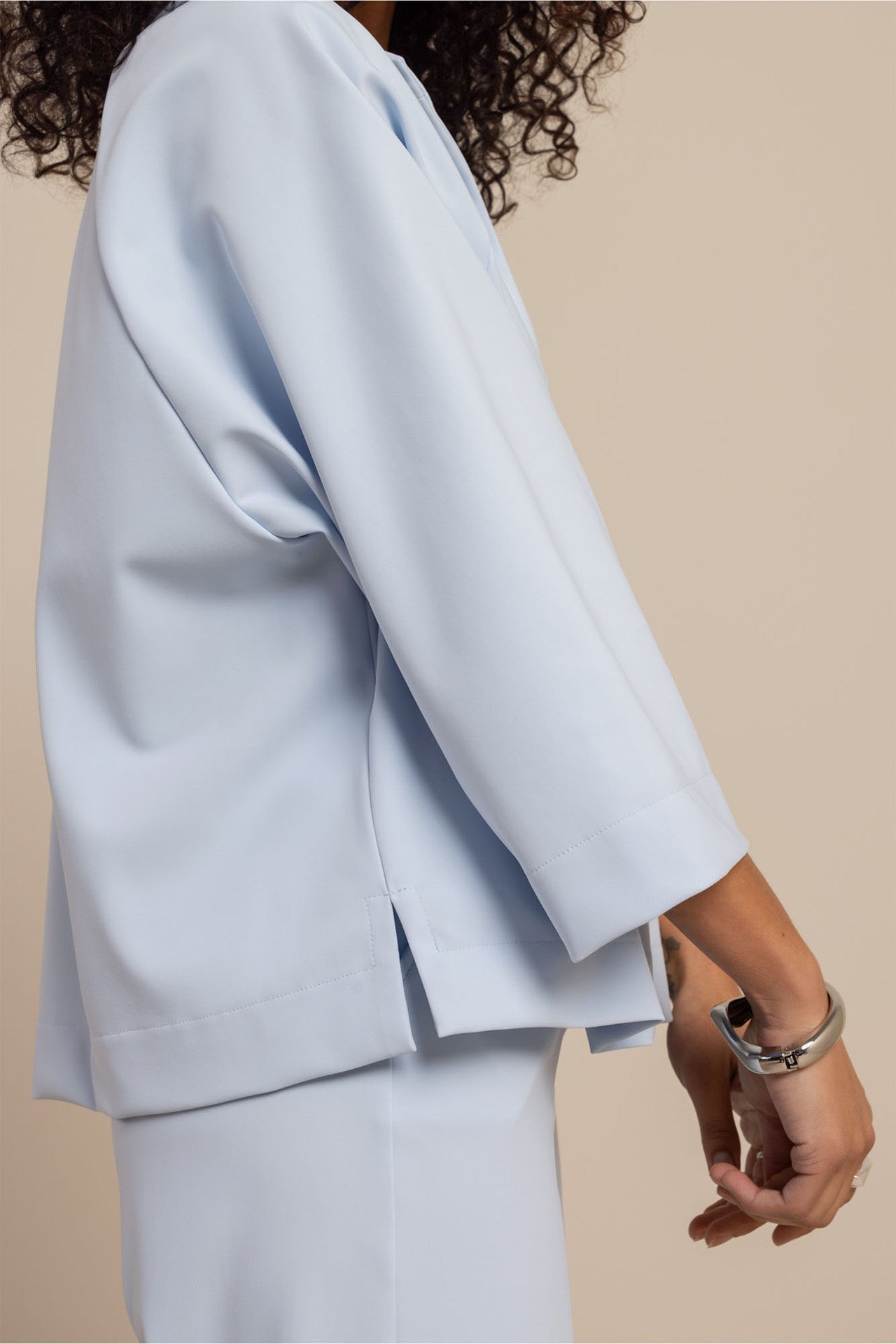 De Remi bonded top van Studio Anneloes is een elegante essential met een moderne uitstraling. De zachte tint Pastel Blue geeft je look een frisse touch. De combinatie van de v-hals en polokraag zorgt voor een verfijnd detail. Dankzij de Bonded Travelstof ervaar je comfort en een mooie, stevige pasvorm.