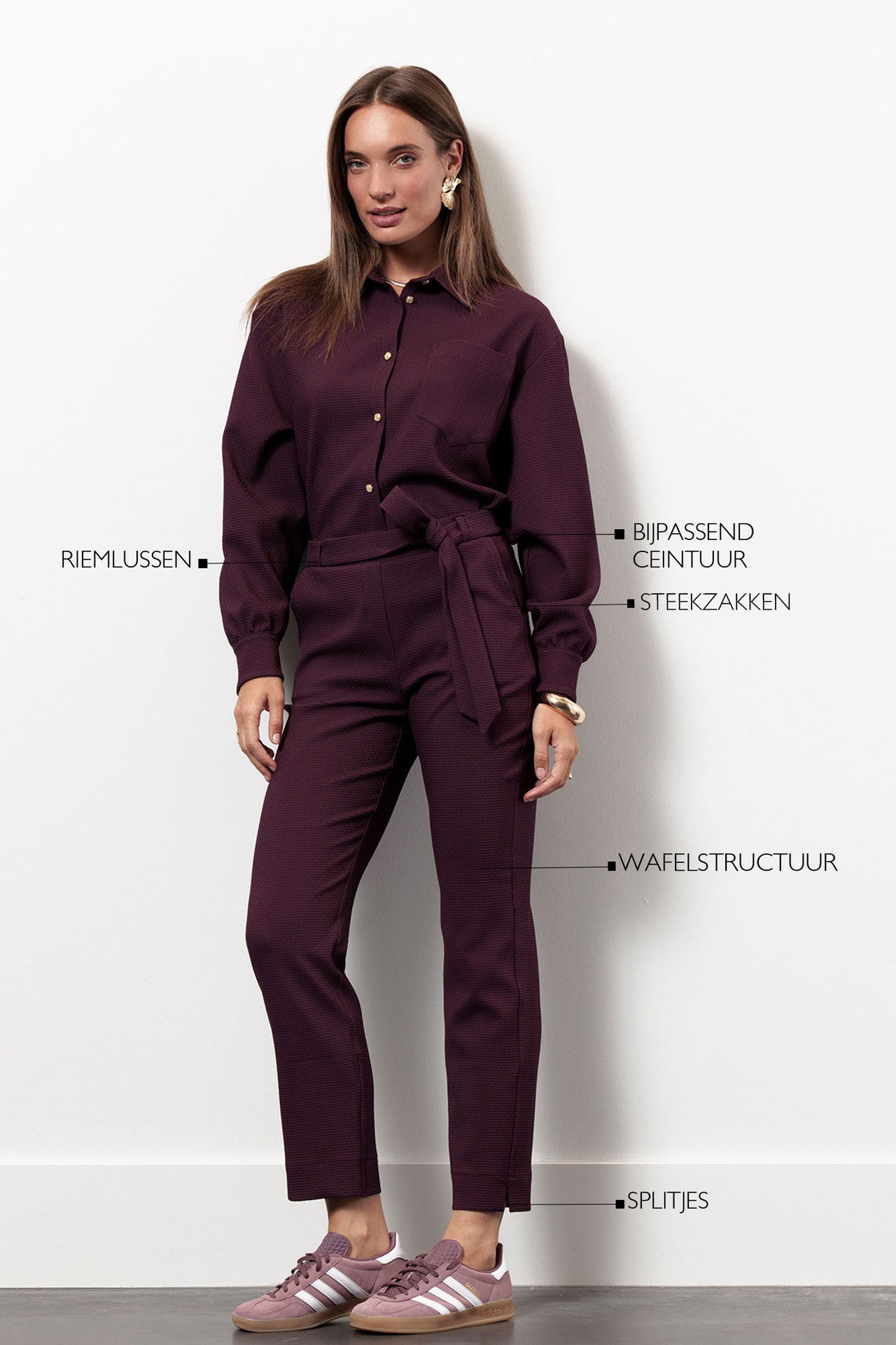 De Zarja Waffle Trousers van Studio Anneloes is een stijlvolle upgrade voor jouw garderobe. De kleur Blackberry combineert een aangesloten tapered fit met een zachte wafelstructuur. De bijpassende ceintuur benadrukt je taille en geeft je look direct een vrouwelijke touch. Comfortabel, veelzijdig en modern.