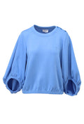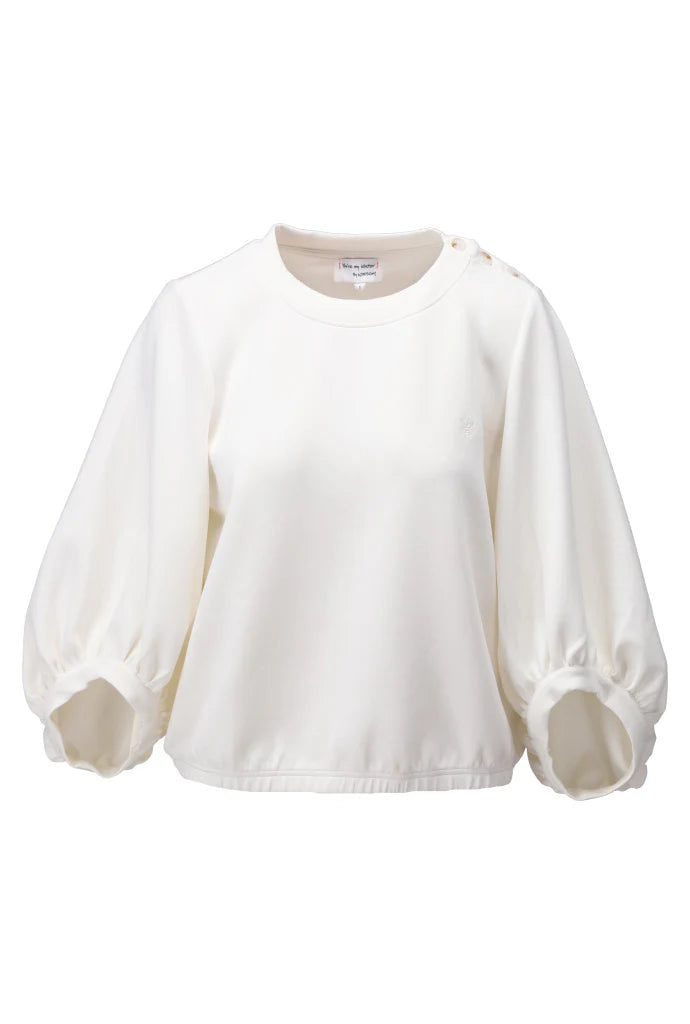 Ontdek de elegante stijl met deze prachtige pull met ronde hals en knoopdetails op de schouders. Het losse silhouet en de royale pofmouwen zorgen voor een speelse en modieuze uitstraling.