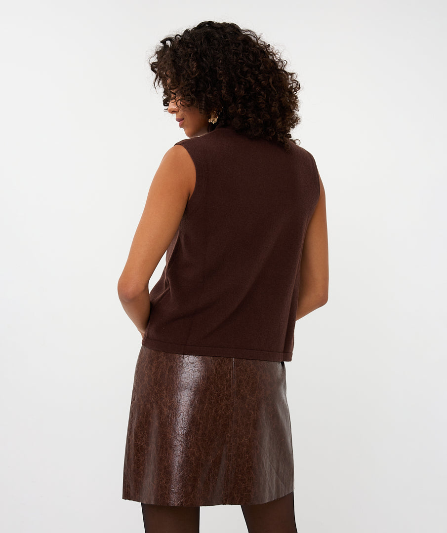 De rijke chocoladebruine kleur geeft iedere outfit een warme, luxe uitstraling. Mooi te combineren met het bijpassende vest of een leren rok voor een moderne, vrouwelijke look.